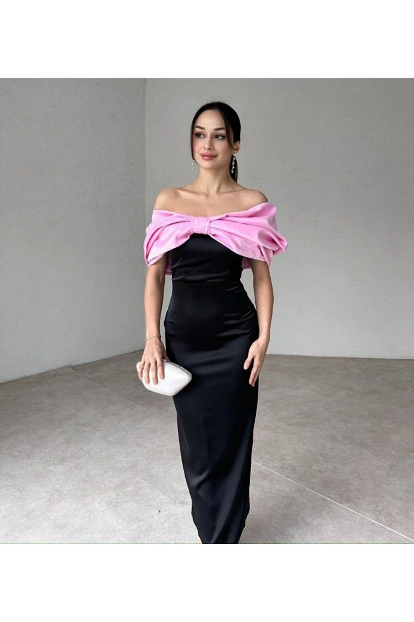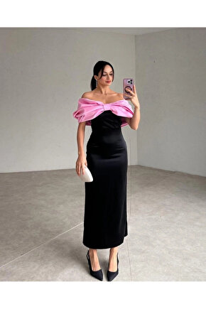 Pembe Önü Fiyonklu Elbise