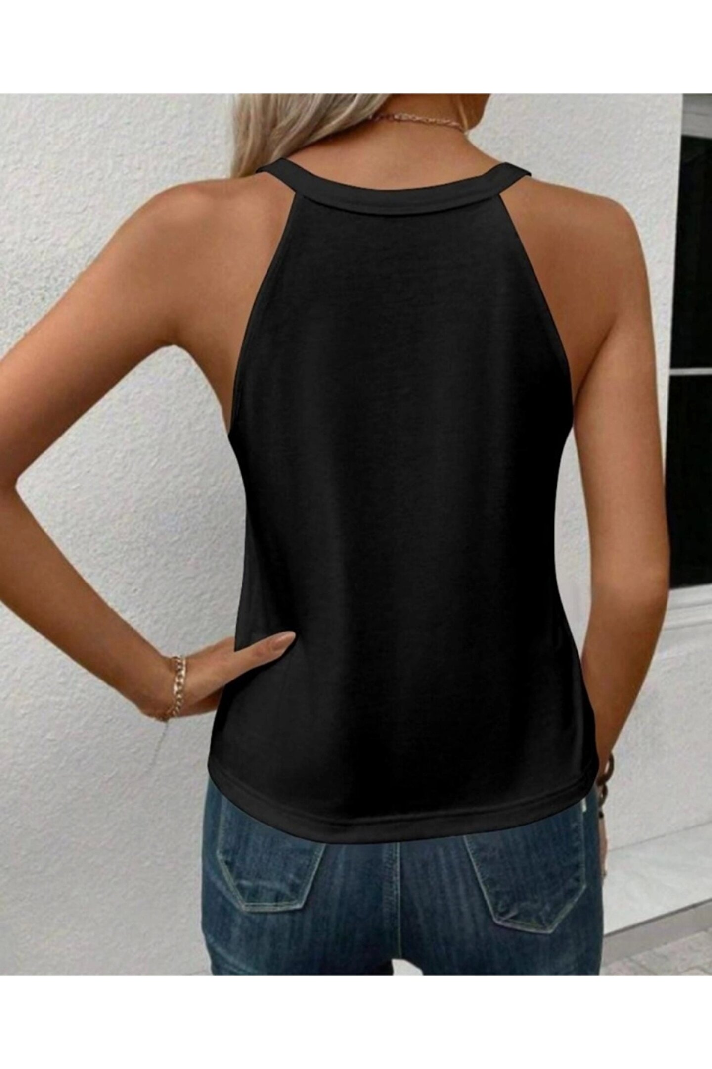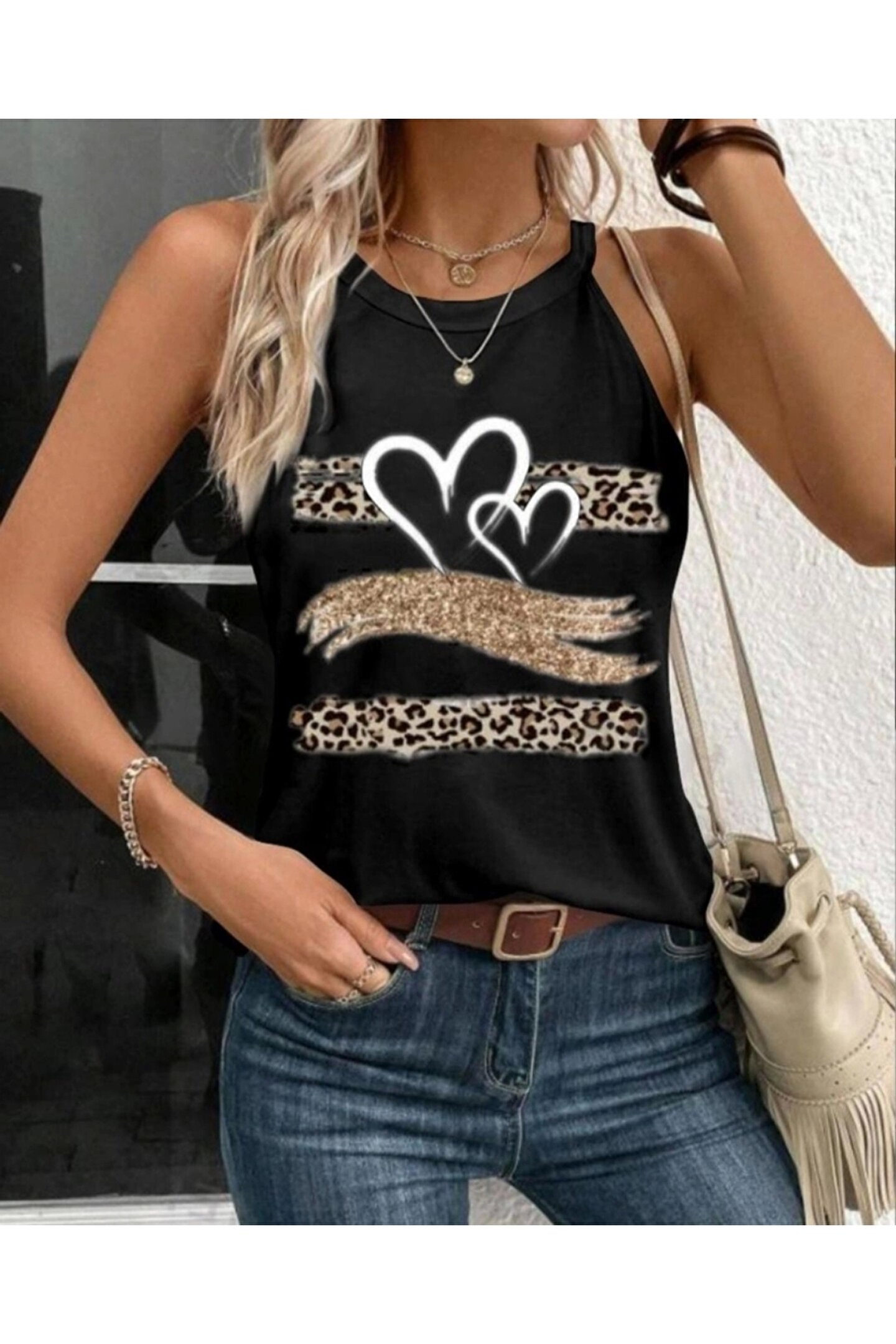 Kadın Sıfır Kol Halter Yaka Kalp Baskılı Viskon Bluz