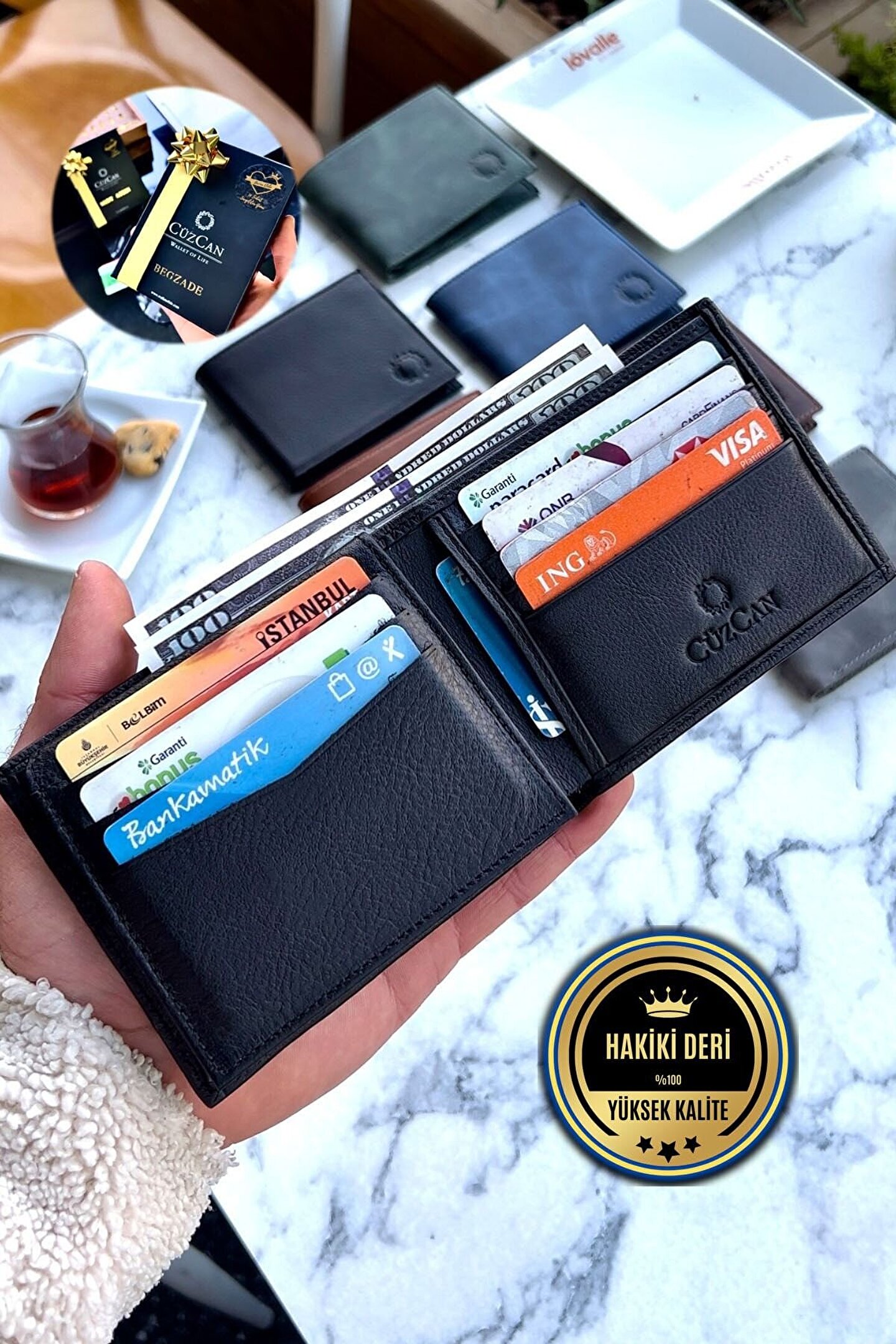 Nyc Siyah Erkek Bol Kart Bölmeli Hakiki Deri Cüzdan- Isme Özel ( Hakiki Deri Anahtarlık Hediyeli)