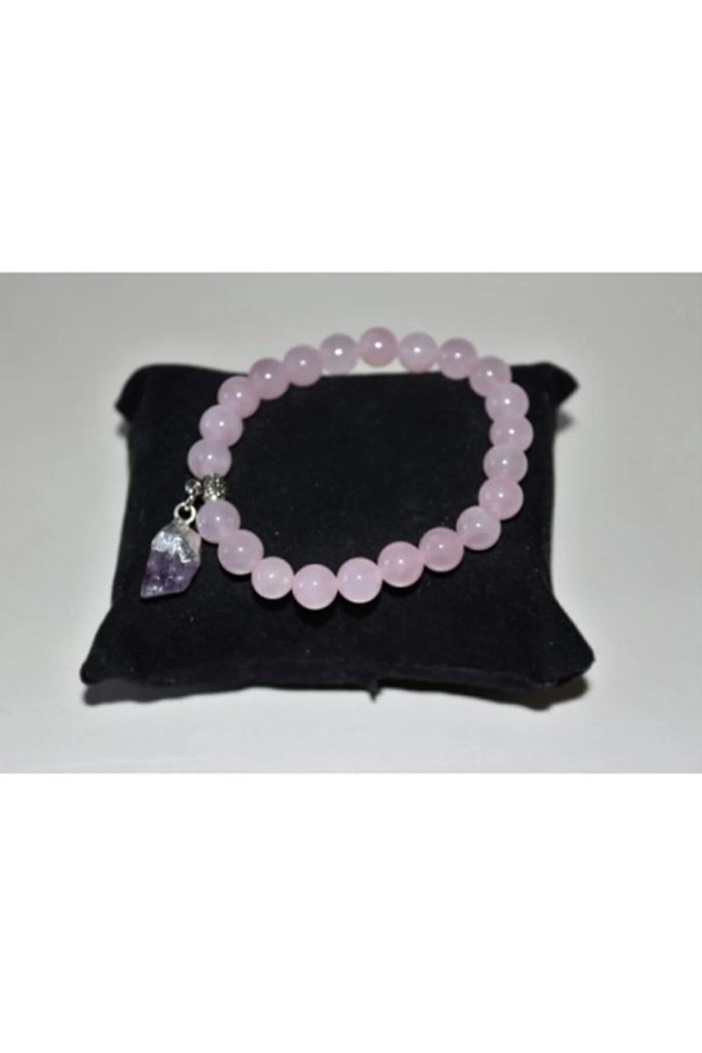 Pembe kuvars taşı, kalbi hastalık ve travmalara karşı korur. Mutluluk duygusu verir. Ametist ile uyumlu kullanıldığı zaman bir şekilde enerjiyi arttırır ve aşk duygusunu güçlendirir. ; Burçları koç, boğa, ikizler, yengeç, başak, ; Uyumlu olduğu çakra boğaz çakrası ve 4. Kalp çakrası ; Elastik yapıda olduğu için yetişkin kadın ve erkekler için uygundur, bu üründe kullanılan işlenmemiş ametist taşı şekli küçük farklılıklar gösterebilir bu üründe kullanılan doğal taş: Pembe kuvars taşı, ametist taşı bu üründe kullanılan doğal taş boyutu: Ortalama çap : 8 mm ;
