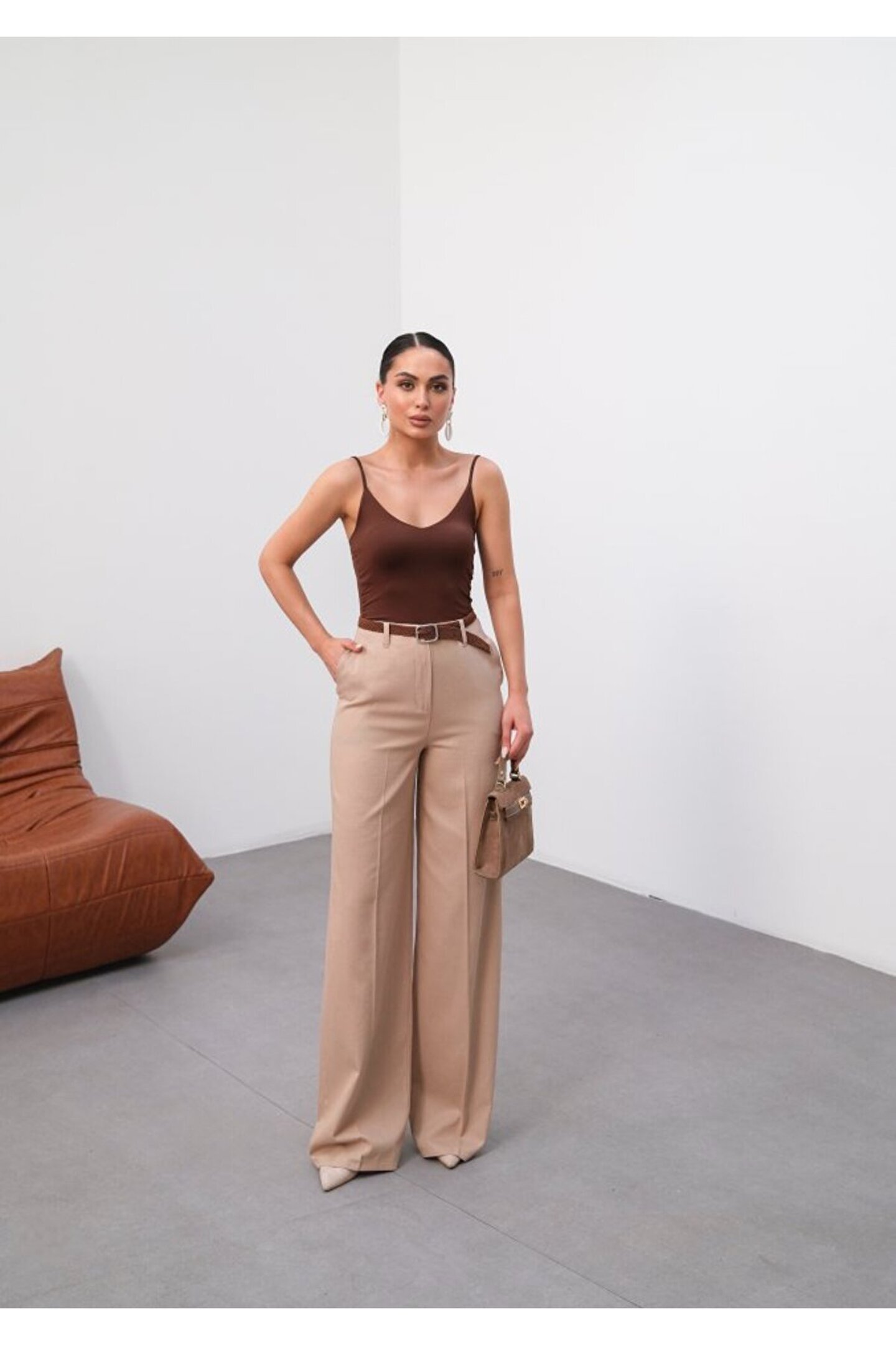 DEAG Keten Kemerli Ve Dökümlü Palazzo Pantolon (Kemer Dahil)