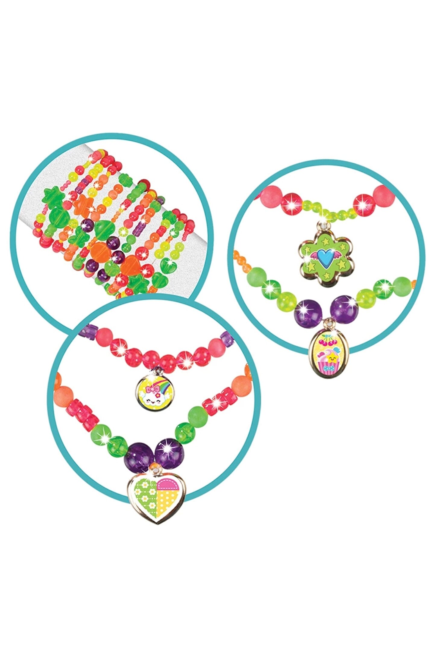 Renk renk boncuklarla, kendi takını tasarla! Kolyeni ve bilekliğini oluştur! Küçük parçalar, 3 yaş altı çocuklar için uygun değildir; Sağlık testlerinden geçmiştir;