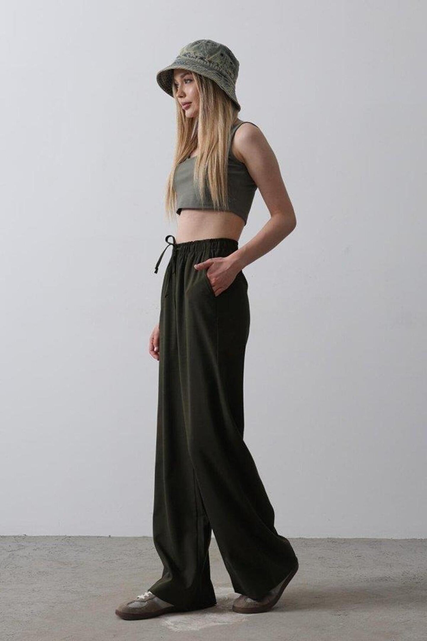 delta online Beli Lastikli Bol Paça Pantolon - Haki