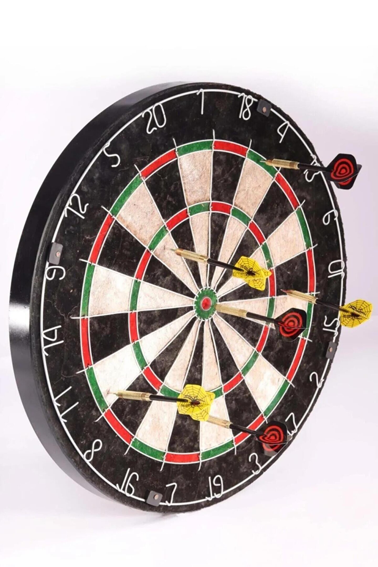 Ürün Özellikleri Ürünün yüzeyi sisal bitkisinin lifleri ile üretilmiş ve özel preslenmiş şekildedir.; Dart oklarının ucu çelik, ana gövde pirinç ve kanat kısmı özel sert plastik malzemeden imal edilmiştir.; Sisal yüzeyi sayesinde, okların yüzeyde bıraktığı hasar minimal düzeyde kalmaktadır.; Duvar askısı sayesinde basit şekilde duvarınıza asabilirsiniz.; Paslanmaz, örümcek tasarımlı bölmelerini dilediğiniz yöne hareket ettirebilirsiniz.; Profesyonel kullanıcılar ve dart sporunu öğrenmek isteyenler için uygun bir üründür.; Ürün Ölçüleri / Paket İçeriği Atış yapılan yüzeyin çapı 18 inç (45 cm X 45 cm) ölçüsündedir.; Yüzeyin kalınlığı ise 3.8 cm’dir.; Set içerisinde 6 adet 18 Gram dart oku çıkmaktadır.; Dart okunun uzunluğu 15 cm, kanat ölçüleri ise 2 cm x 2 cm Renkli kutu ile 1 adet dart tahtası ve 6 adet dart oku gönderilmektedir.; Ürün Temizliği ve Bakımı - Uyarılar Ürün temizliği sadece nemli bir bez ile yapılmalıdır, sonrasında kuru bez ile nemi alınmalıdır.; Ürün 7 yaş altı çocukların kullanımına uygun değildir.; Bu yaş grubundaki çocukların, dart oklarına erişimlerine izin verilmemelidir.; 7 yaş ve üzeri çocuklar için ise ebeveynlerinin gözetiminde kullanılması yerinde olacaktır.; Amacı dışındaki kullanımlarda çeşitli yaralanmalara sebebiyet verebilir.