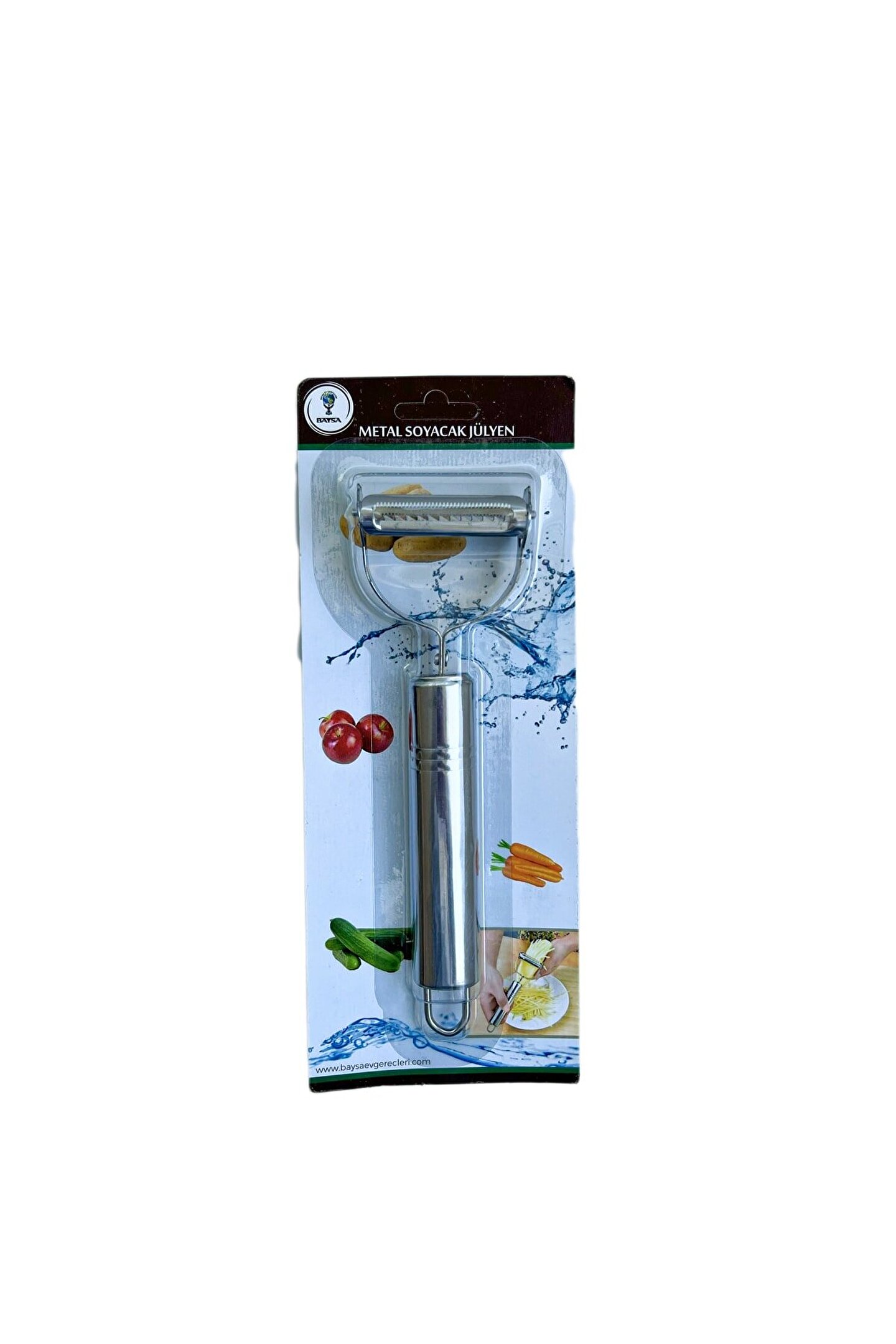 Paslanmaz çelik metal jülyen soyacak, mutfağınız için vazgeçilmez bir yardımcı. ; Metal jülyen soyacak, sebze ve meyvelerinizi pratik bir şekilde soymak ve doğramak için harika bir mutfak gerecidir. ; Yumuşak veya sert sebze ve meyveleri yorulmadan soyabileceksiniz ve vaktiniz size kalacak. ; Paslanmaz çelik olduğu için uzun yıllar kullanabileceksiniz. ; Ürün ölçüleri: 16cm uzunluk 5,5cm genişlik paket içeriği: 1 adet paslanmaz çelik jülyen soyacak iade koşulları: Ürünlerinizin tarafınıza ulaştığı şekilde patpata sarılı, kutulu ve ambalajı bozulmamış olarak iade edilmesi gerekmektedir aksi halde gönderilen iadeler kabul edilemeyecektir;