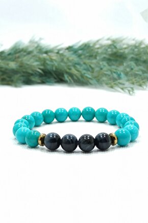 Denver Siyah Kaplan Gözü Turkuaz Doğal Taş Kadın Bileklik Rio