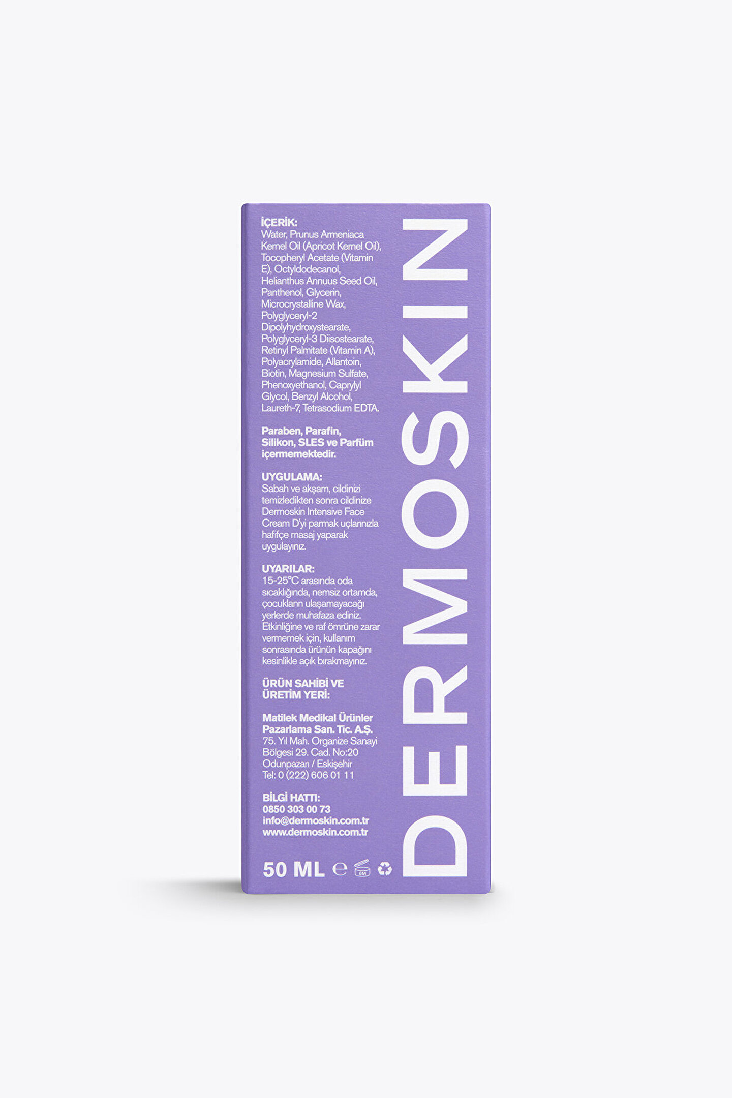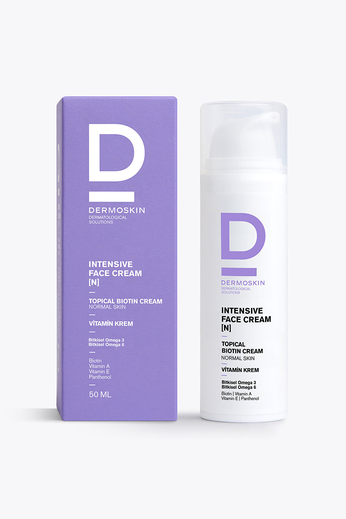 Dermoskin Dermoksin Topicalbiotin N Normal Ciltler için Bakım Kremi 50ml Dermoksin Topicalbiotin N Normal Ciltler için Bakım Kremi 50 ml Dermoskin Topicalbiotin N, normal ciltler için Vitamin destekli yoğun bakım kremidir.; İçeriğindeki vitaminler ve diğer etken maddeler ile UV ışınlarının ve diğer dış etkenlerin sebep olduğu erken yaşlanma ve doğal yaşlanma sürecini geciktirmek amaçlı formüle edilmiştir.; İçeriğindeki etken maddeler optimal oranlarda kullanılmıştır.; Formülasyonunda bulunan özel taşıyıcılar yardımıyla cilt üzerinde bariyer oluşturarak nem kaybını önler.; Cildin kırışık derinliğinin azalması, elastikiyetinin artması için onarıcı bakım yapar.; ETKEN MADDELER %5 Vitamin E (Tocopherol Acetate) : Serbest radikallere karşı güçlü bir antioksidandır.; Cildi UV ışınlarının zararlarından korumaya, leke ve kırışıklık oluşumunu engellemeye yardımcı olur.; Hasar görmüş cilde besleyici ve yatıştırıcı etkisi vardır.; % 0.1Biotin: Çok sayıda metabolik reaksiyonların içinde yer alan ve temel besleyici vitaminlerden olan biotin, cildin beslenmesine, eritem oluşumunun önlenmesine, deride hiperkeratinizasyonun azalmasına cildin soluk, kuru ve pul pul görünümünün engellenmesine yardımcı olur.; %0.3 Vitamin A (Retinil Palmitate): Kolajen sentezinin artmasına, kırışık derinliğinin azalmasına, epidermisin kalınlaşmasına, cildin elastikiyetinin artmasına ve UV-hasarlı derinin rejenerasyonuna yardımcı olur.; Esansiyel Yağ Asitleri ( Apricot Kernel Oil, Helianthus Seed ): Esansiyel yağ asitler, keratinozomların lipit sentezi ve fonksiyonu için gereklidir.; Hücre çeperlerinin fonksiyonunun korunmasına, özellikle yaşlanmış ciltlerde su kaybının önlenmesine kuru ve pul pul görünümlü cildin nem kapasitesinin artmasına yardımcı olur.; Topicalbiotin-N Krem (O/W) su içinde yağ emülsiyon tipinde, özel taşıyıcılar yardımıyla normal ciltler için formüle edilmiştir.; CİLT TİPİ Normal ciltlerin kullanımına uygundur.; UYGULAMA Sabah ve akşam, cildinizi temizledikten sonra Dermoskin Topicalbiotin N kremini parmak uçlarınızla hafifçe masaj yaparak tüm cilde uygulayınız.; UYARILAR Haricen kullanılır.; 15-25°C arasında oda sıcaklığında, nemsiz ortamda, çocukların ulaşamayacakları yerde ve kapağı kapalı olarak muhafaza ediniz.; Gözünüze temas etmesi halinde bol su ile durulayınız.