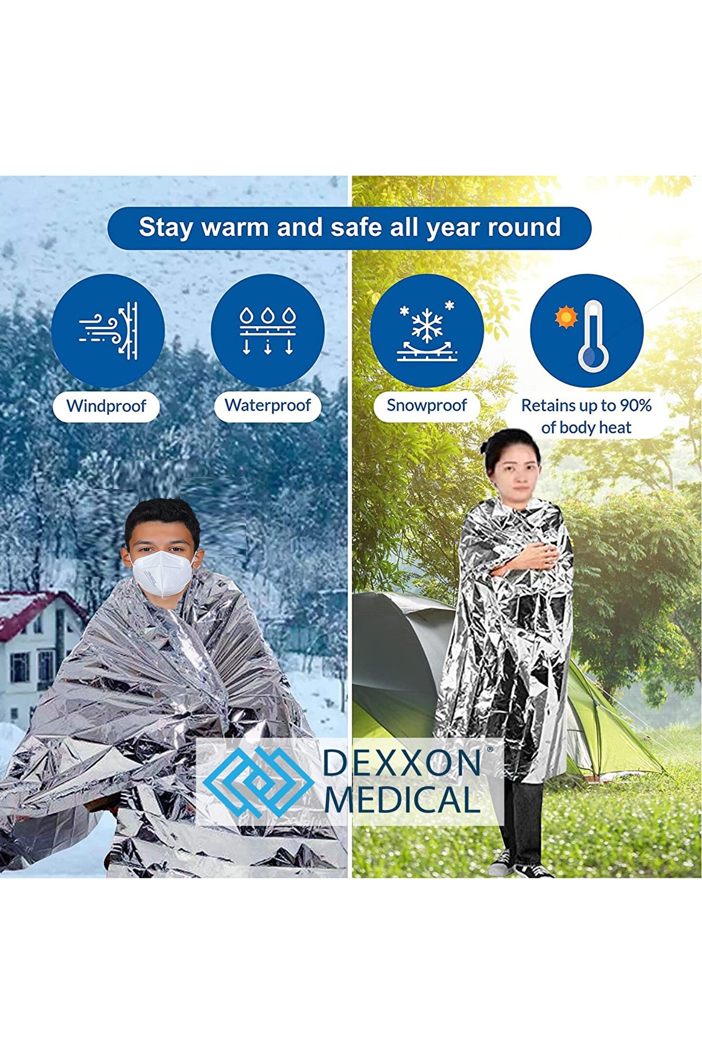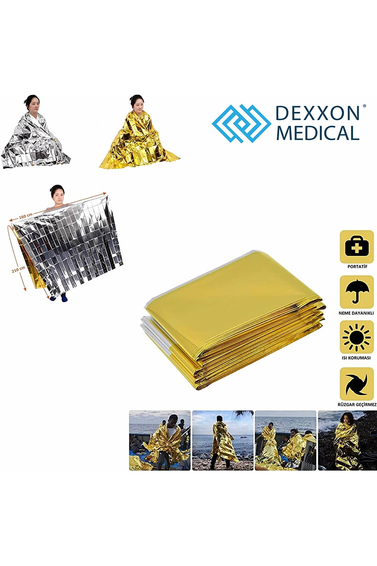 Açık ilk yardım kurtarma battaniye rüzgar geçirmez su geçirmez folyo termal battaniye acil durum battaniyesi kamp yürüyüş survival cankurtarma kiti aracı Acil durum battaniyesi fonksiyonlar: 1; Acil durum battaniyesi, vücut ısısını kazalardan sonra keskin düşüşten korumak için kullanılabilir; 2; Yansıtıcı film olarak kullanılabilir, kurtarıcılara bir sinyal gönderir; 3; Araç soğuk alanlarda veya geceleri bozuldu, vücudu sıcak tutabilir; Vücut ısısının % 90% 'unu korur/yansıtır; 4; Acil durum battaniyesi yağmurda panço olarak kullanılır; 5; Uyku tulumu koymak, daha iyi yalıtım; 6; Barınak, zemin örtüsü, battaniye vb; Olarak kullanılabilir; Özellikler: Özelliği: Kompakt boyutu, hafif, taşıması kolay, tek kullanımlık, su geçirmez ve rüzgar geçirmez Malzeme: Pet Renk: Gümüş/altın Boyut: 210*160cm; (1 inç = 2; 54 cm);;