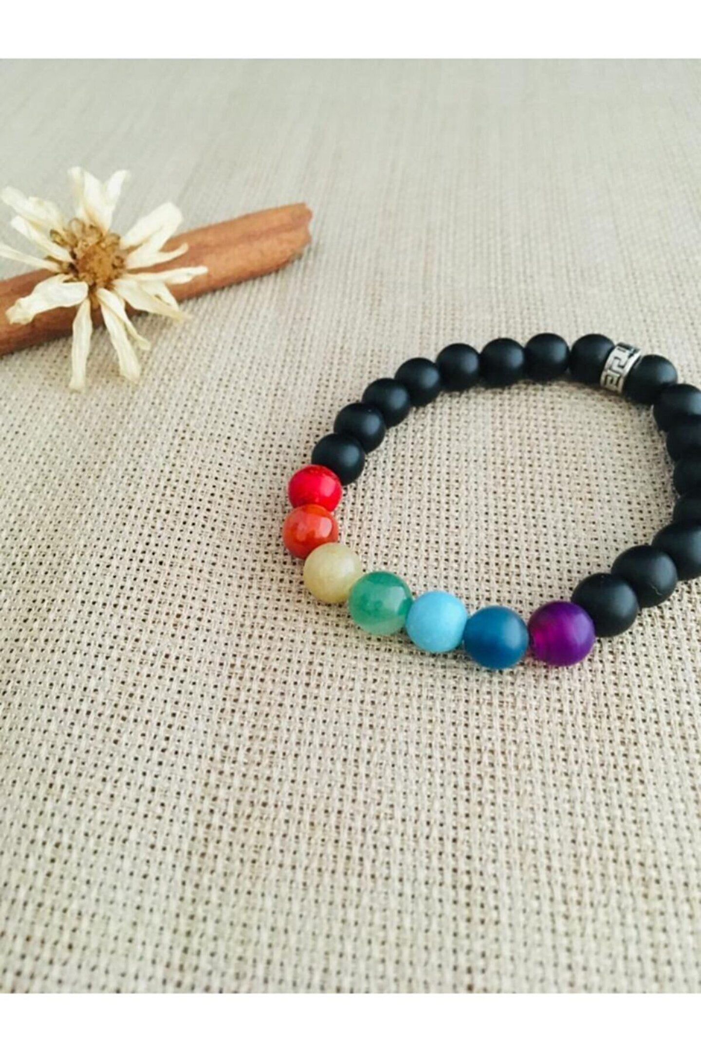 7 Çakra Oniks Bileklik Tüm tasarımlarımızda doğal taş ve rudrakshatohumları kullanılmaktadır. ; Ürünlerimizi hazırlarken sağlamlığı kanıtlanmış ince paraşüt iplerikullanılmıştır. ; Kullanılan doğal aşlar ve rudrakshatohumları doğal yapıları nedeniyle farklılık g ö sterebilmektedir.T ü m tasarımlarımız el yapımıdır. ; Kök Çakra (kırmızı): Mercan Sakral Çakra (turuncu): Akik Göbek Çakra (sarı): Akik Kalp Çakrası (yeşil): Akik Boğaz Çakrası (Mavi): Turkuaz Üçüncü Göz Çakrası (Çivit Mavisi): Akik Taç Çakra (Mor): Göz Akik;