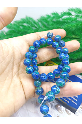 DOĞAL TAŞ CENNETİ 10 MM AZURİT DOĞAL TAŞ DİZİ 40 CM UZUNLUĞUNDA (SERTİFİKALI)