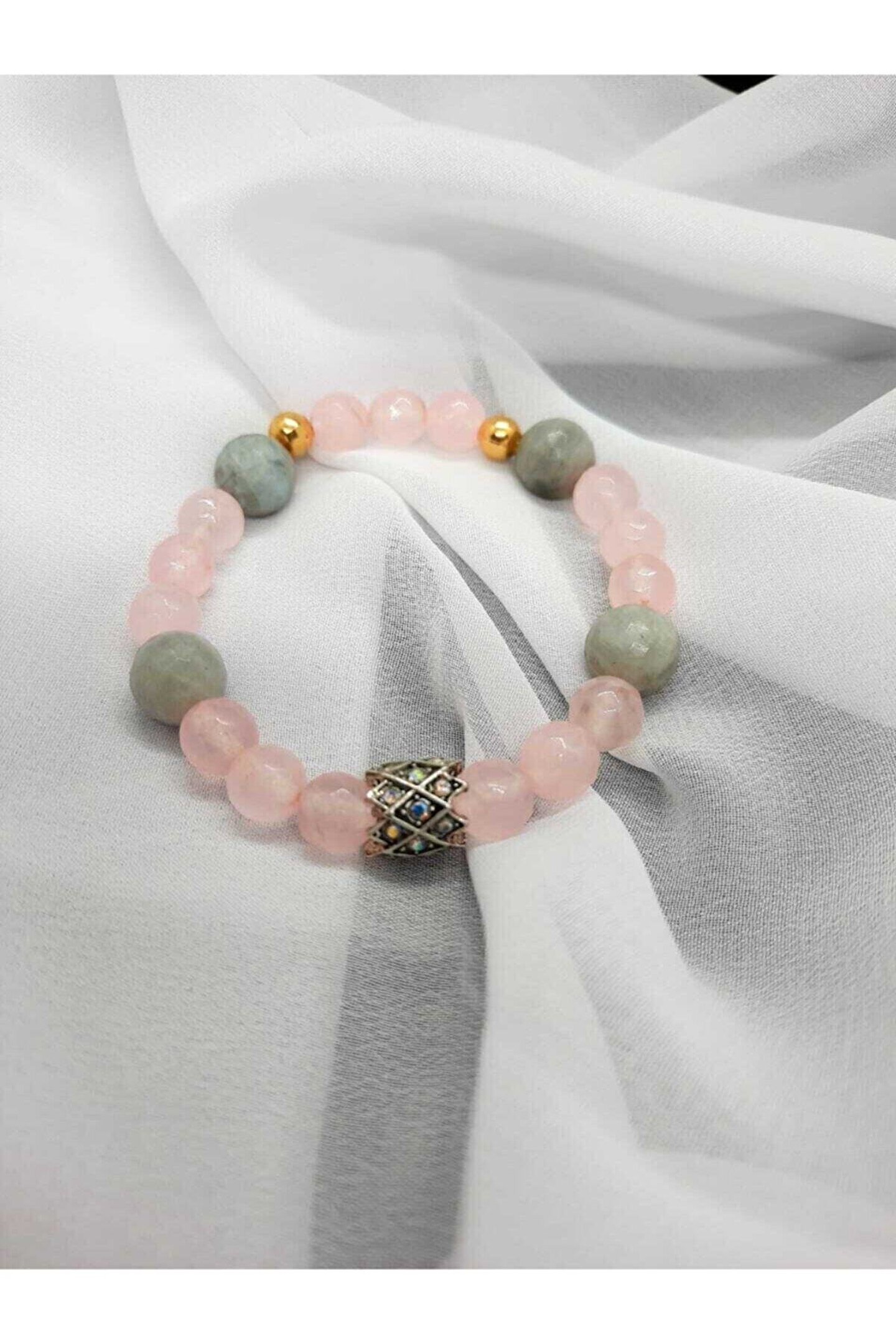 DOĞAL TAŞ CENNETİ Akuamarin, Pembe Kuvars Elysium Model Doğal Taş Bileklik
