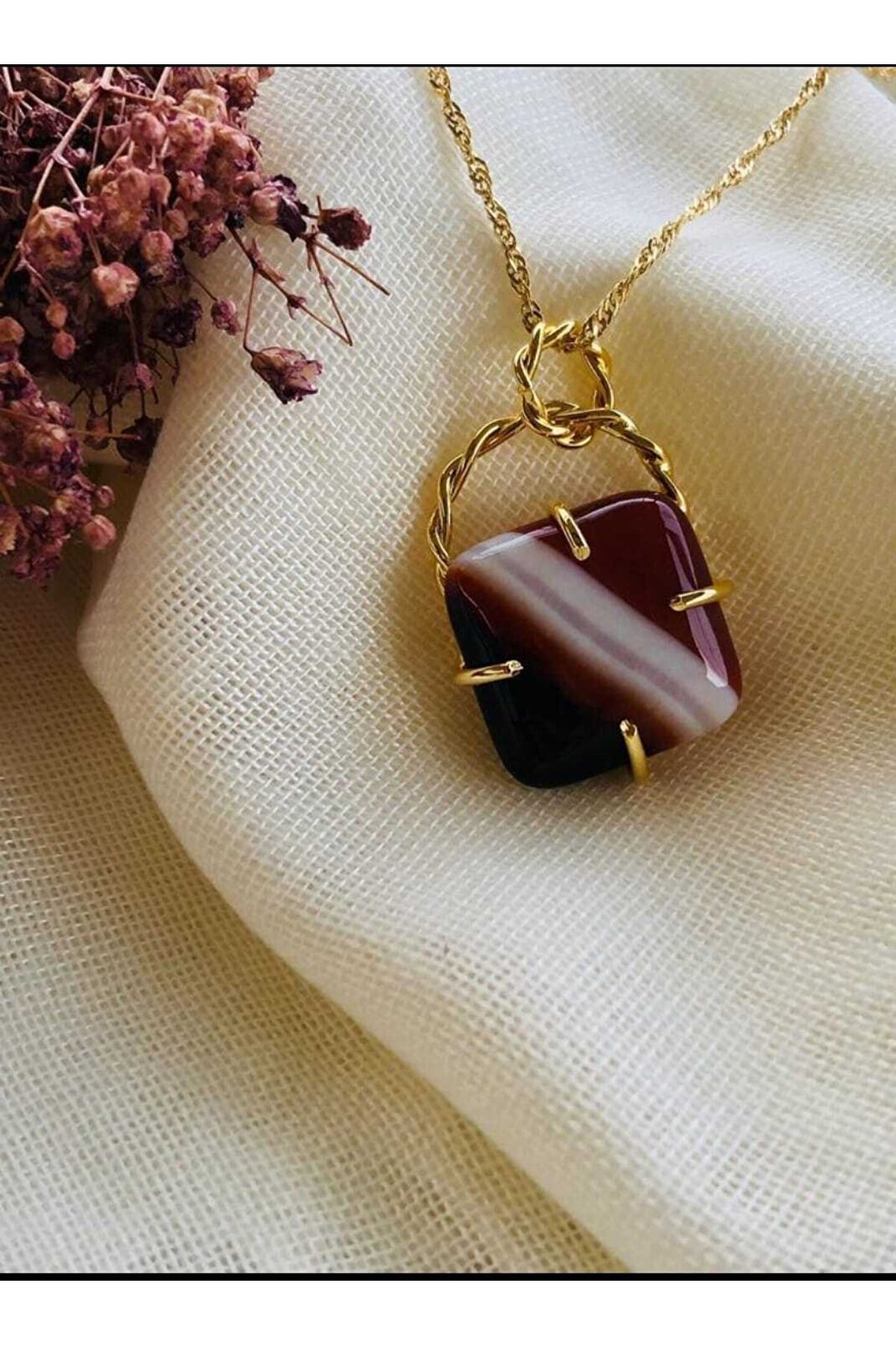 Doğal taş kullanımı ile öne çıkan bu kolye, zarif ve otantik bir görünüm sunar; Alacalı akik ve agat taşları, her parça benzersiz bir estetik katarken, altın kaplama detaylarıyla da şıklığı tamamlar; 47 cm uzunluğundaki zincir, rahat bir kullanım sağlar ve farklı boyuttaki boynuzlara uyum sağlar; Sertifikalı ürün olması, kalite ve güvenilirlik açısından önemli bir avantaj sunar;