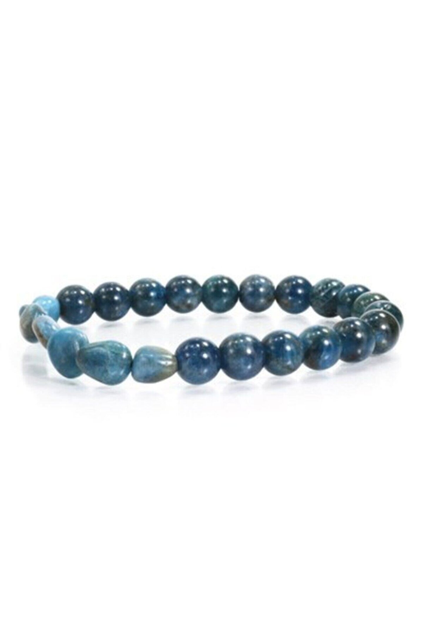 Doğal taş kullanımı sayesinde her bileklik benzersiz ve otantik bir görünüm sunar; Apatit taşı, bileklikte doğal güzelliğini ve şıklığını ön plana çıkarır; Doğal taş materyali ile hem dayanıklılık hem de estetik bir dokunuş sağlar;