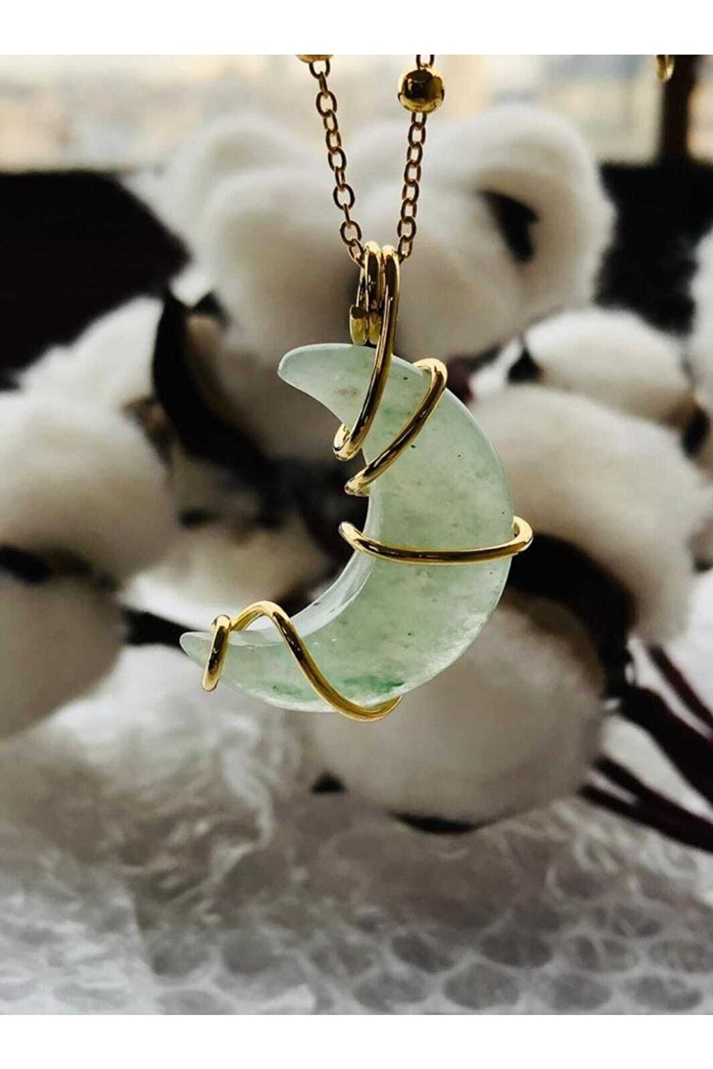 AVENTURİN AY ŞEKLİNDE ALTIN KAPLAMA KOLYE UCU AAA KALİTE TAŞIN EN KALİTELİ KISMI OLUP ÜRÜN ÖZEL KUTUSUNDA SERTİFİKA VE ZİNCİRİYLE GELMEKTEDİR.(SERTİFİKALI)(47CM ZİNCİR DAHİL)