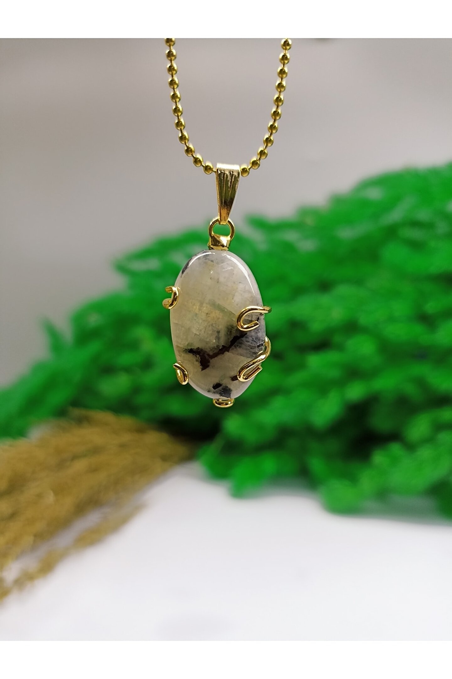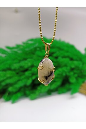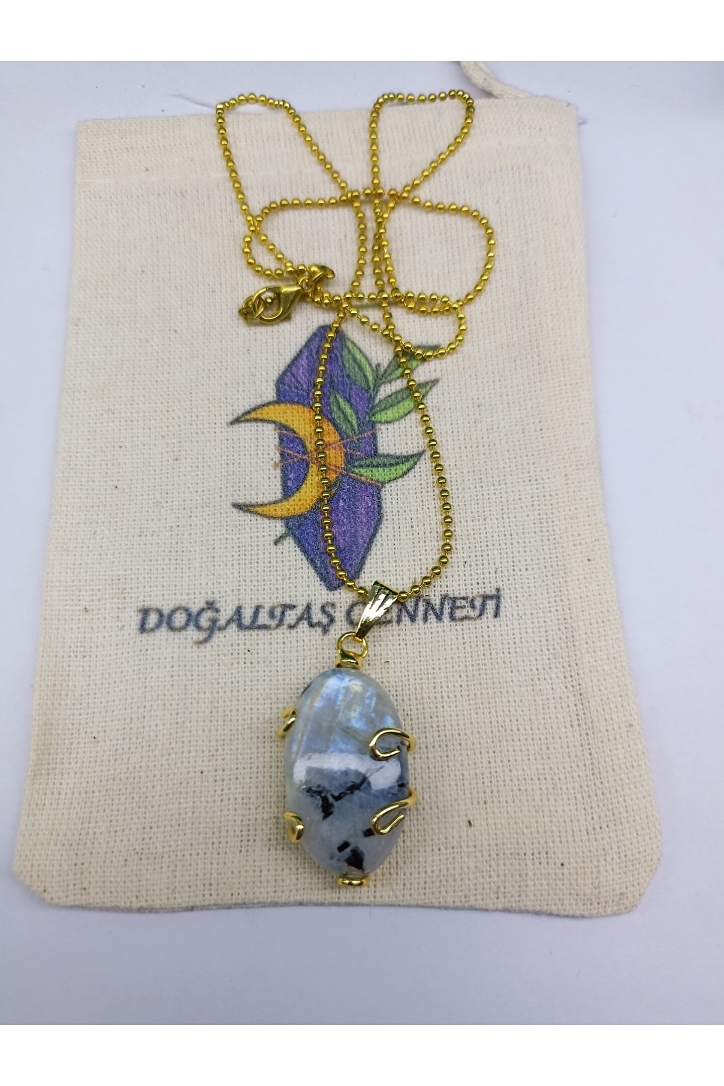 DOĞAL TAŞ CENNETİ Ay Taşı A Kalite Altın Kaplama Kolye Ucu(sertifikalı)