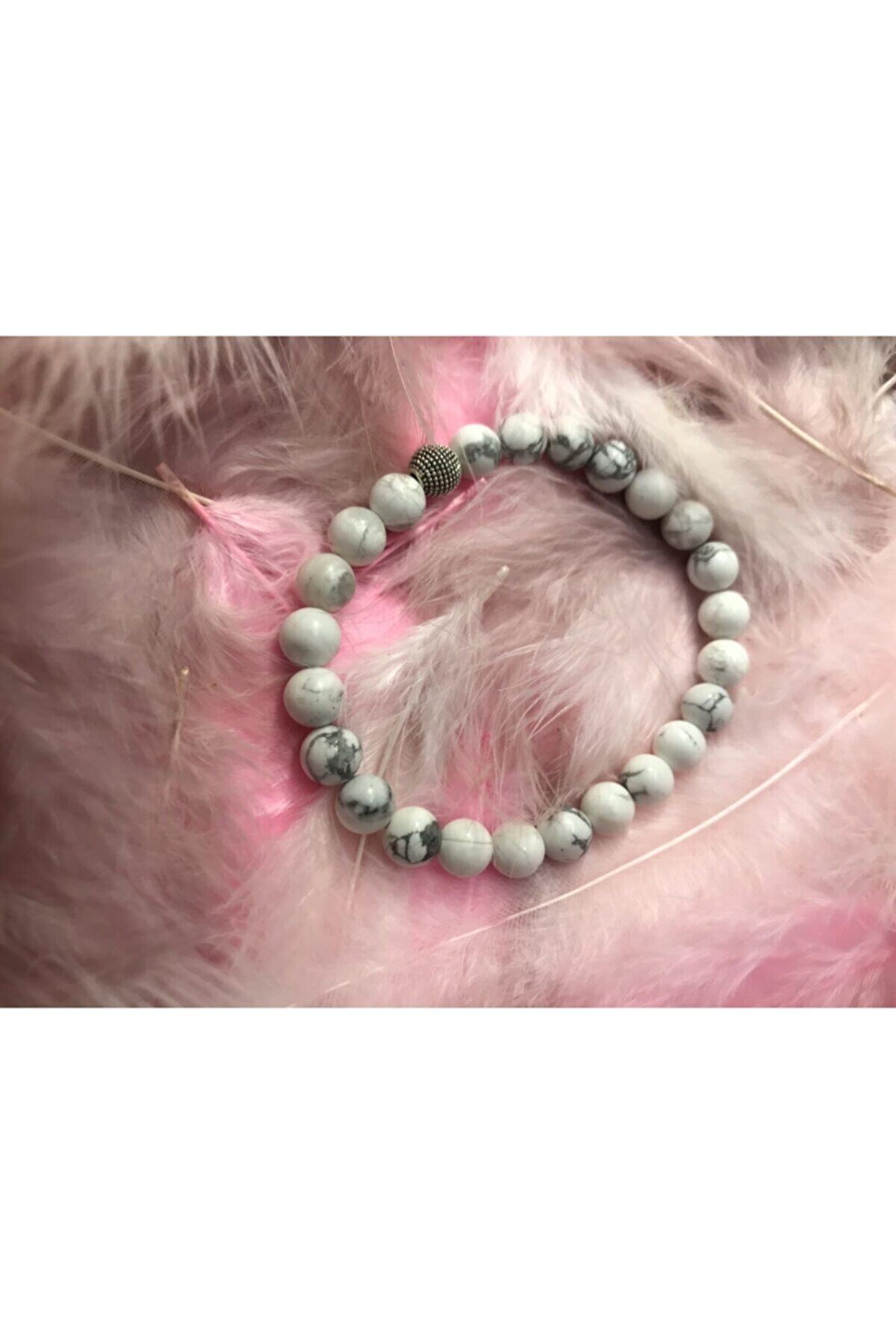 Doğal taş kullanımı sayesinde her bileklik benzersiz ve otantik bir görünüm sunar; Taş cinsi olarak seçilen havlit taşı, bilekliğe zarif bir parlaklık ve estetik bir dokunuş katar; Doğal materyallerin tercih edilmesiyle hem çevre dostu hem de şık bir aksesuar deneyimi yaşatır;