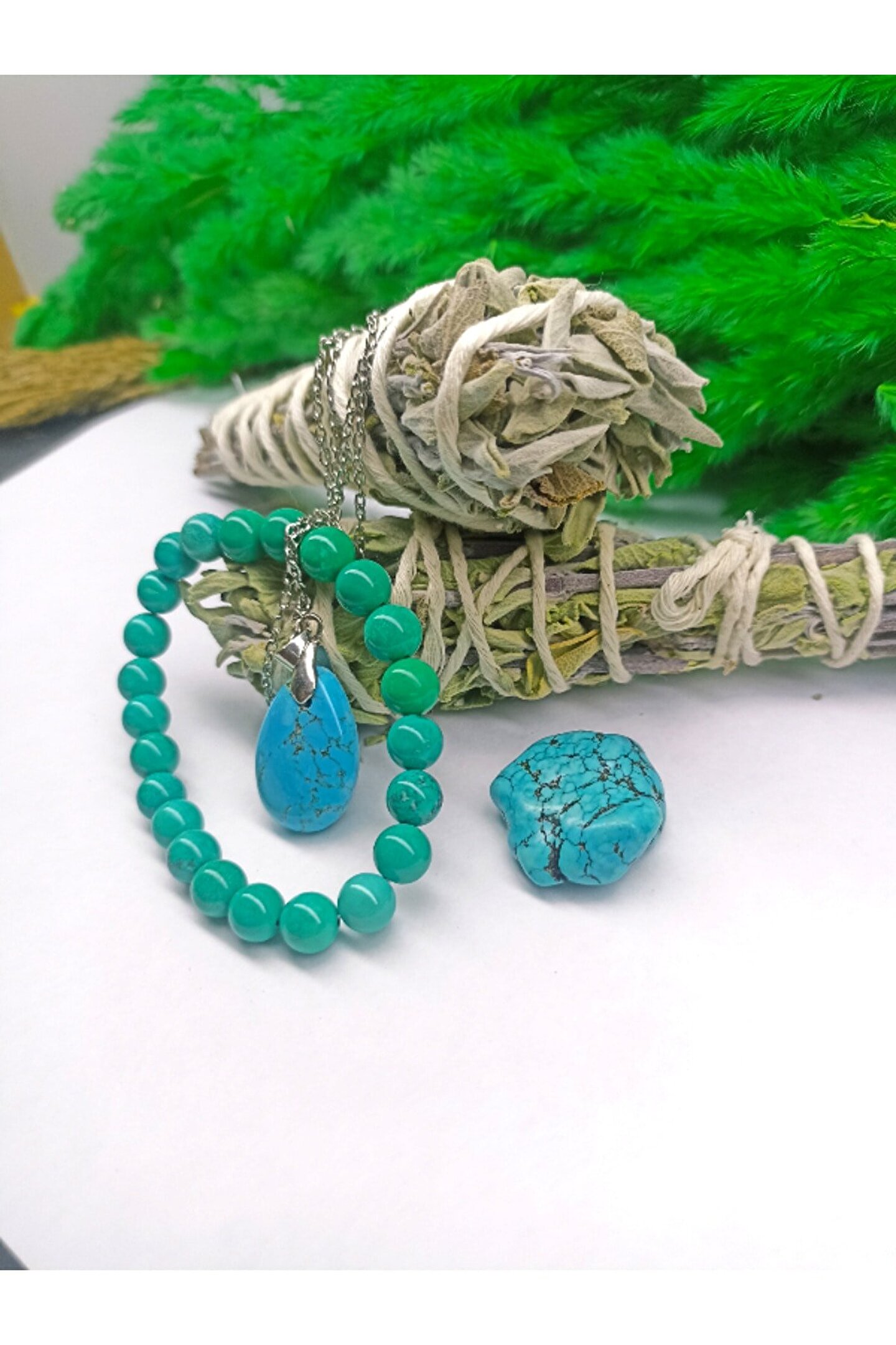 - Doğal taş kullanımı, her bir bilekliğin benzersiz ve otantik bir görünüm kazanmasını sağlar; - Sertifikalı ürünler, kalite ve güvenilirlik açısından önemli bir güvence sunar; - Turkuaz ve firuze gibi renkli taşların birleşimi, göz alıcı bir estetik oluşturur; - Çift tütsü detayı, bilekliğe farklı bir dokunuş katarken aynı zamanda şık bir detay olarak öne çıkar;