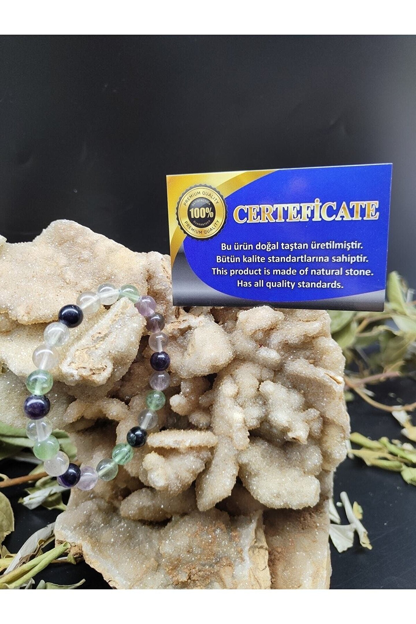 Doğal taş bileklik, şıklığınızı tamamlayacak zarif bir aksesuardır; Florit taşı, benzersiz renk tonları ve desenleriyle dikkat çeker; Sertifikalı ürünümüz, kalite ve güvenilirlik açısından sizi memnun eder; Doğal taş kullanımı sayesinde her bileklik benzersiz ve otantik bir görünüm sunar;