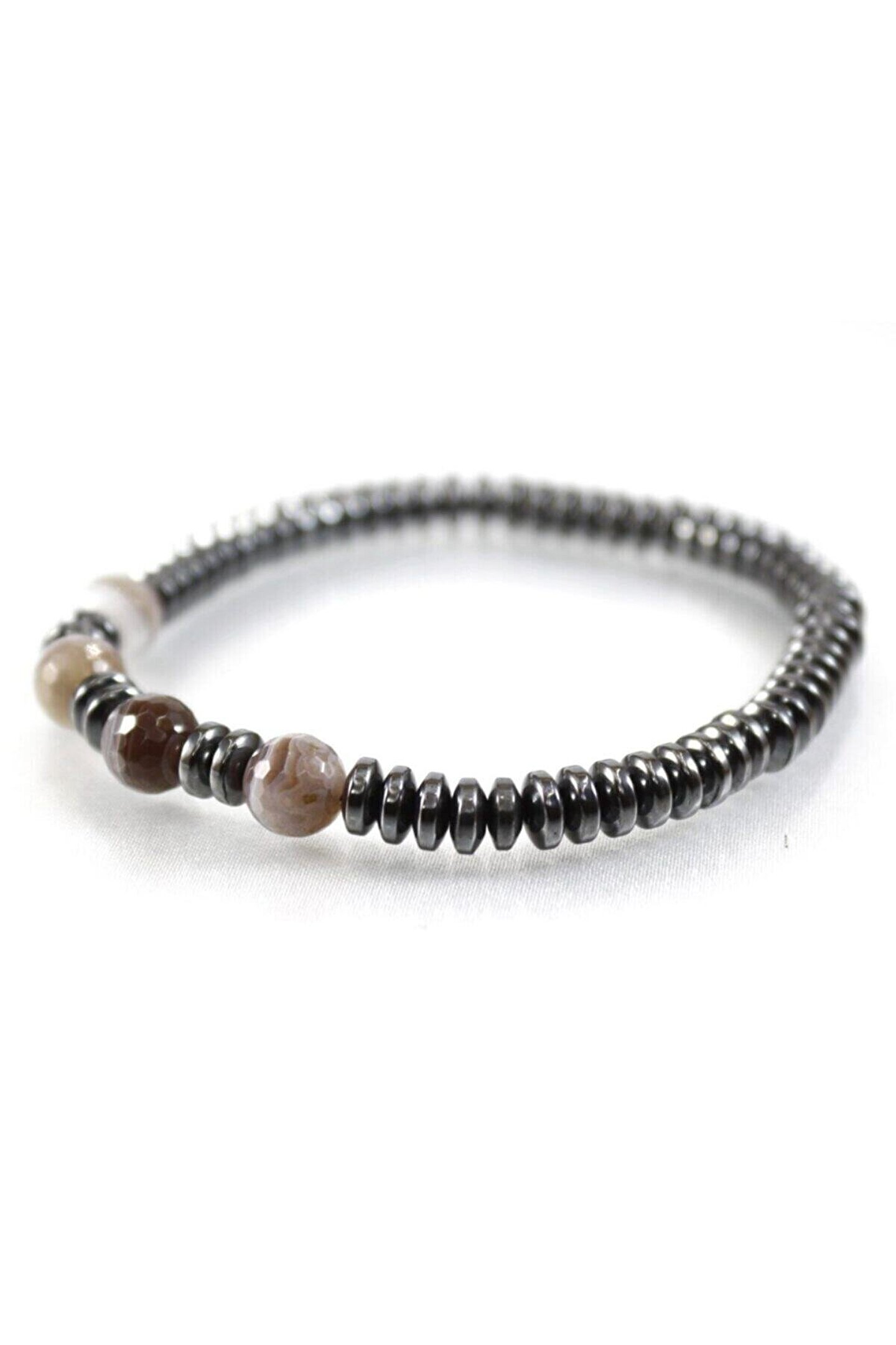 Doğal taş kullanımı, her bir bilekliğin benzersiz ve otantik bir görünüm kazanmasını sağlar; Hematit botswana akik taşı, bilekliğe zarif bir parlaklık ve estetik bir dokunuş katar; Bu bileklik, hem günlük kullanım hem de özel günler için ideal bir aksesuar seçeneği sunar; Doğal taşların sıcaklığını ve doğallığını yansıtan tasarım, her kıyafetle uyum sağlar;
