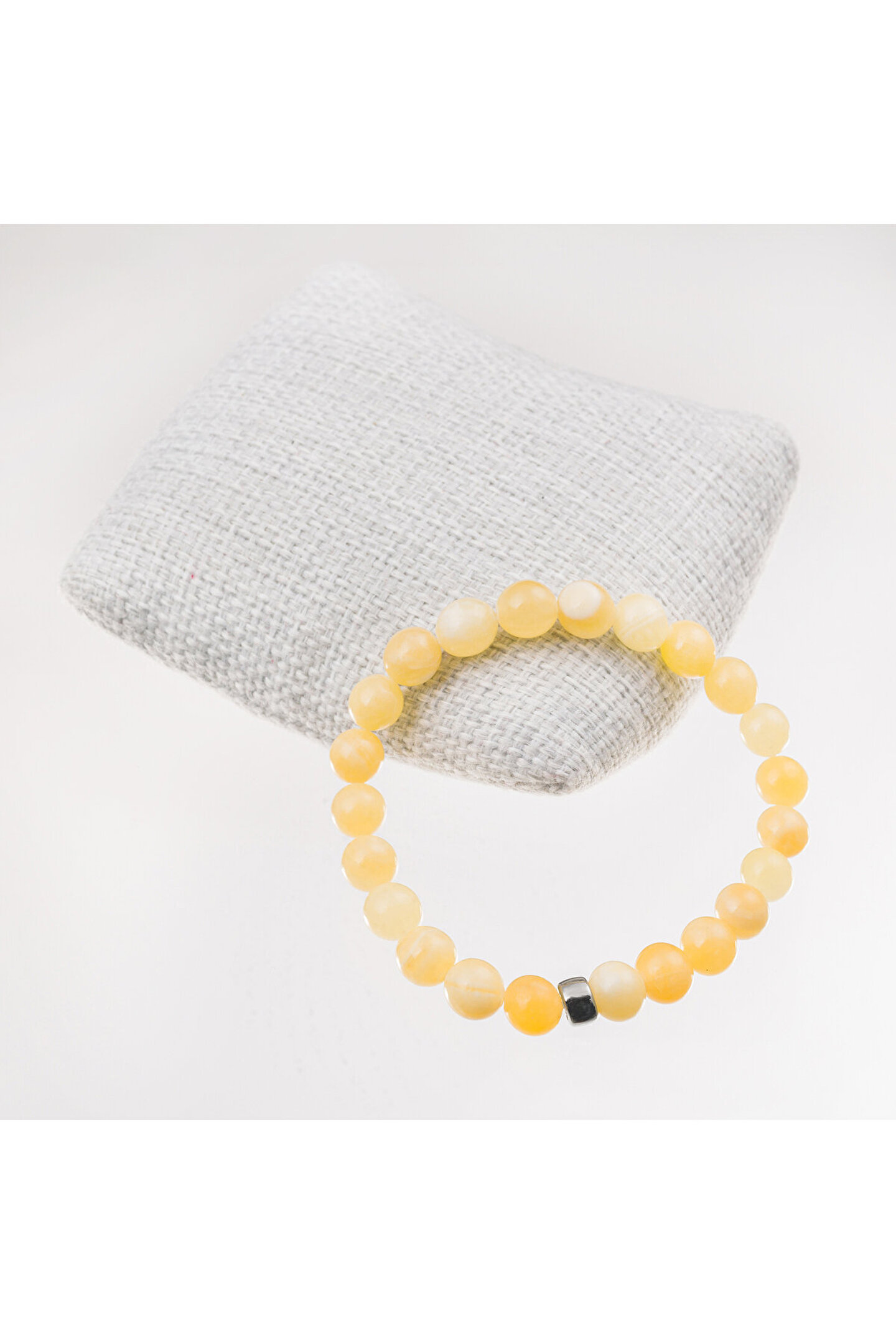 Doğal kalsit taşı kullanılarak üretilmiş, şıklığı ve zarafeti bir arada sunan bileklik; 8 mm boyutundaki bu bileklik, klasik ve modern tarzları harmanlayarak her türlü kıyafetle uyum sağlar; Doğal taş materyali sayesinde her bileklik benzersiz bir dokunuşla öne çıkar ve kişisel tarzınıza özgün bir hava katar; Doğal taş kullanımı, bilekliğin hem dayanıklı hem de estetik bir görünüm kazanmasını sağlar;