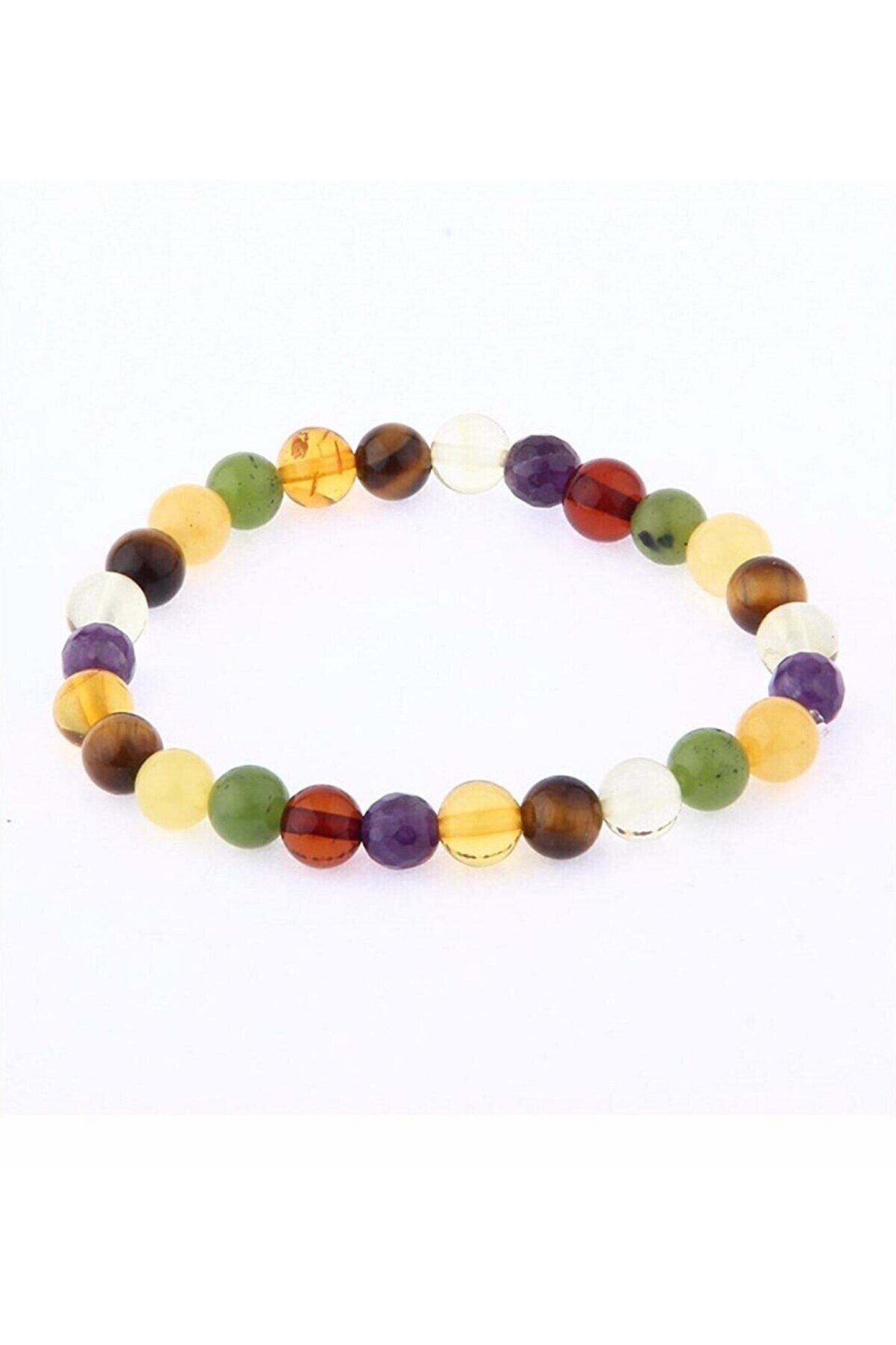 DOĞAL TAŞ CENNETİ Kaplan Gözü, Kehribar, Yeşim, Ametist Doğal Taş 8mm Bileklik