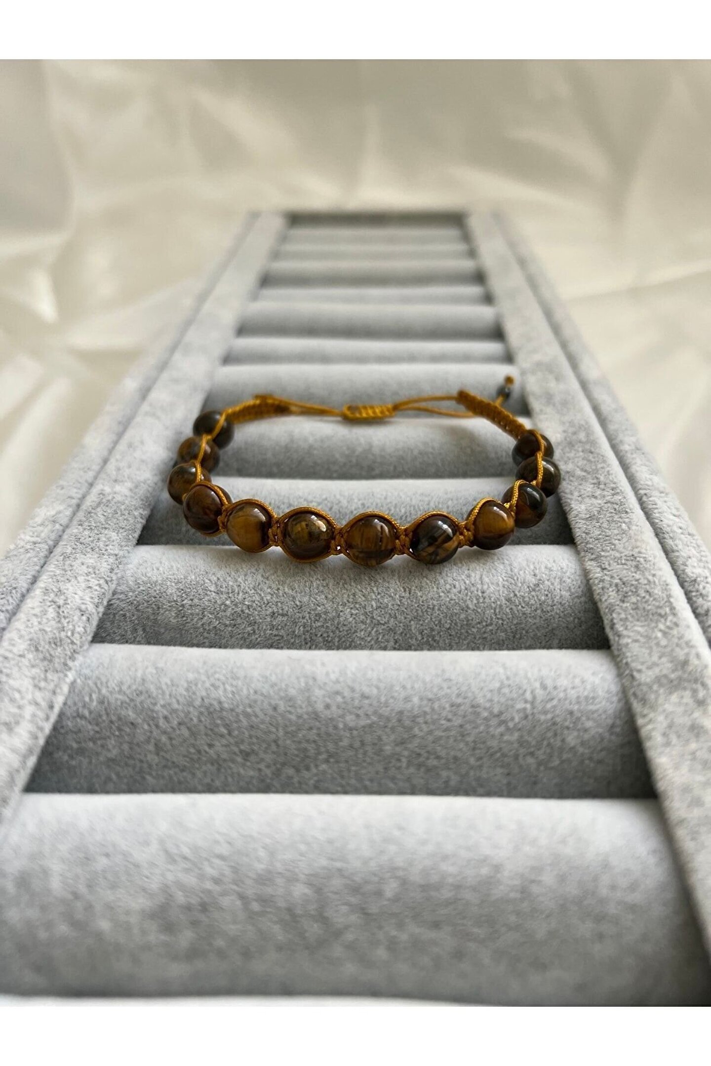 Doğal taş kullanımı sayesinde her bileklik benzersiz ve otantik bir görünüm sunar; Makrome el örmesi tekniği ile üretilmiş olup, el emeği göz nuru detaylarıyla dikkat çeker; 8mm boyutundaki taşlar, bileklikte zarif bir parlaklık ve estetik bir dokunuş sağlar; Doğal taşların renk ve desen çeşitliliği ile her türlü kıyafetle uyum sağlayarak stilinizi tamamlar;