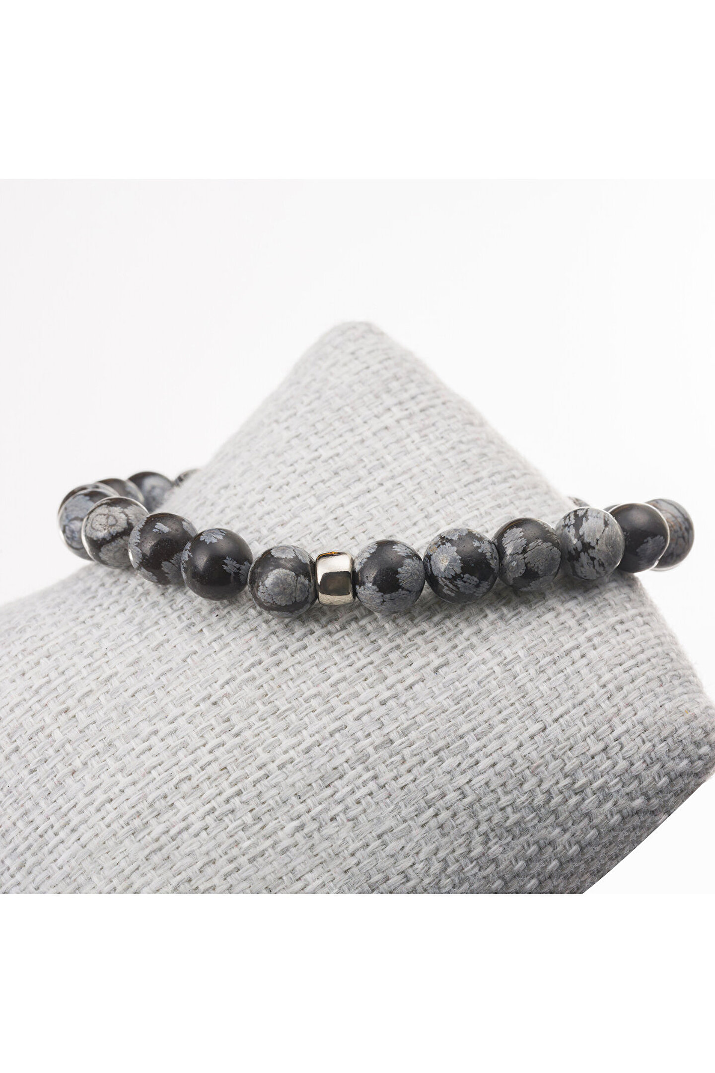 Doğal obsidyen taşı kullanılarak üretilmiş, şık ve zarif bir aksesuar; 8 mm boyutundaki bileklik, klasik ve modern tarzları bir arada sunar; Göz alıcı siyah rengiyle dikkat çeken bu bileklik, her türlü kıyafetle uyum sağlar; Doğal taş materyali sayesinde her bilek boyutuna rahatça uyum sağlar ve konforlu bir kullanım sunar; El yapımı olmasıyla öne çıkan bu bileklik, benzersiz ve özgün bir hediye seçeneği olarak da değerlendirilebilir;