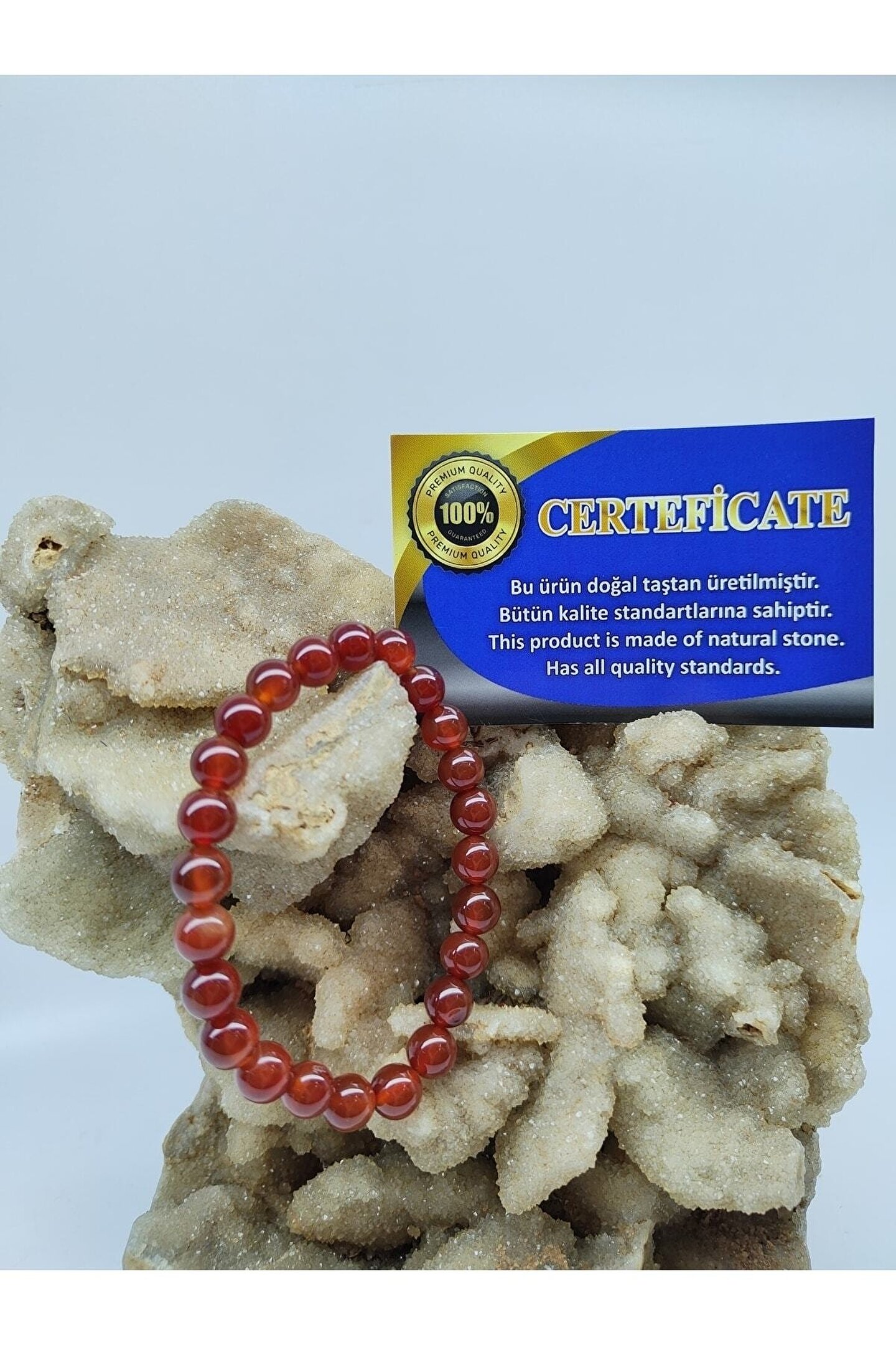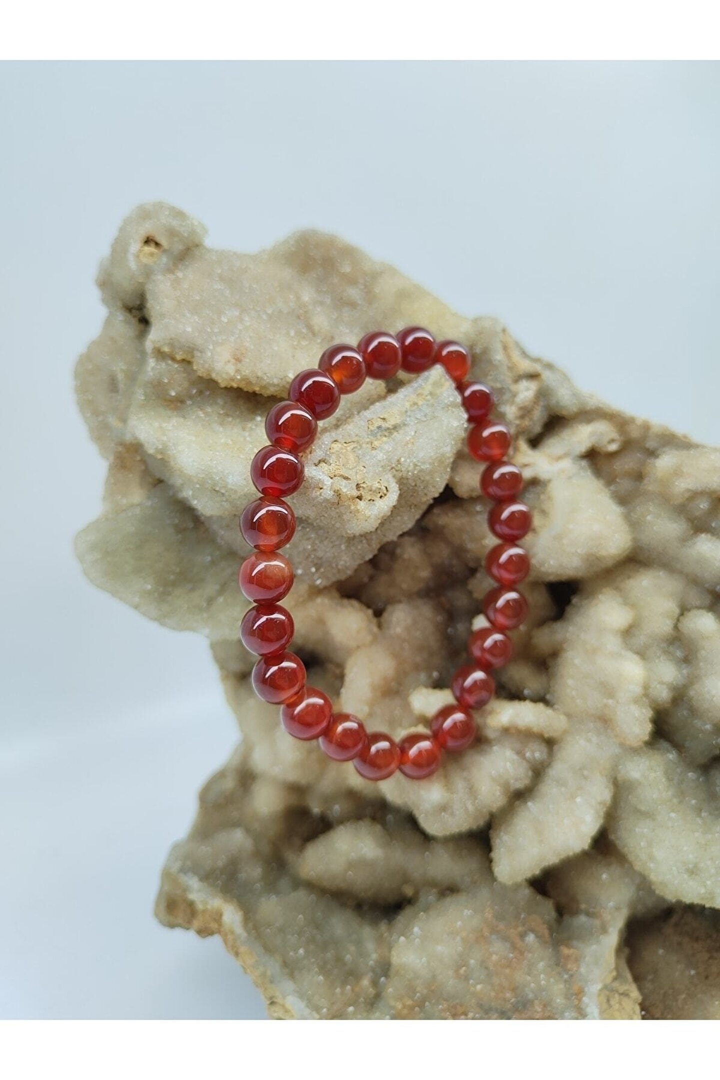 Doğal taş materyali ile üretilmiş, her bir bileklik benzersiz ve otantik bir görünüm sunar; Carnelian akik taşı, enerjiyi dengelemeye ve stresi azaltmaya yardımcı olan doğal bir taş olarak bilinir; Kırmızı tonlarındaki canlı renkleriyle dikkat çeken bu bileklik, şıklığınızı tamamlayacak zarif bir aksesuardır; El yapımı ve özgün tasarımıyla, her bir bileklik kişisel bir dokunuşla öne çıkar;