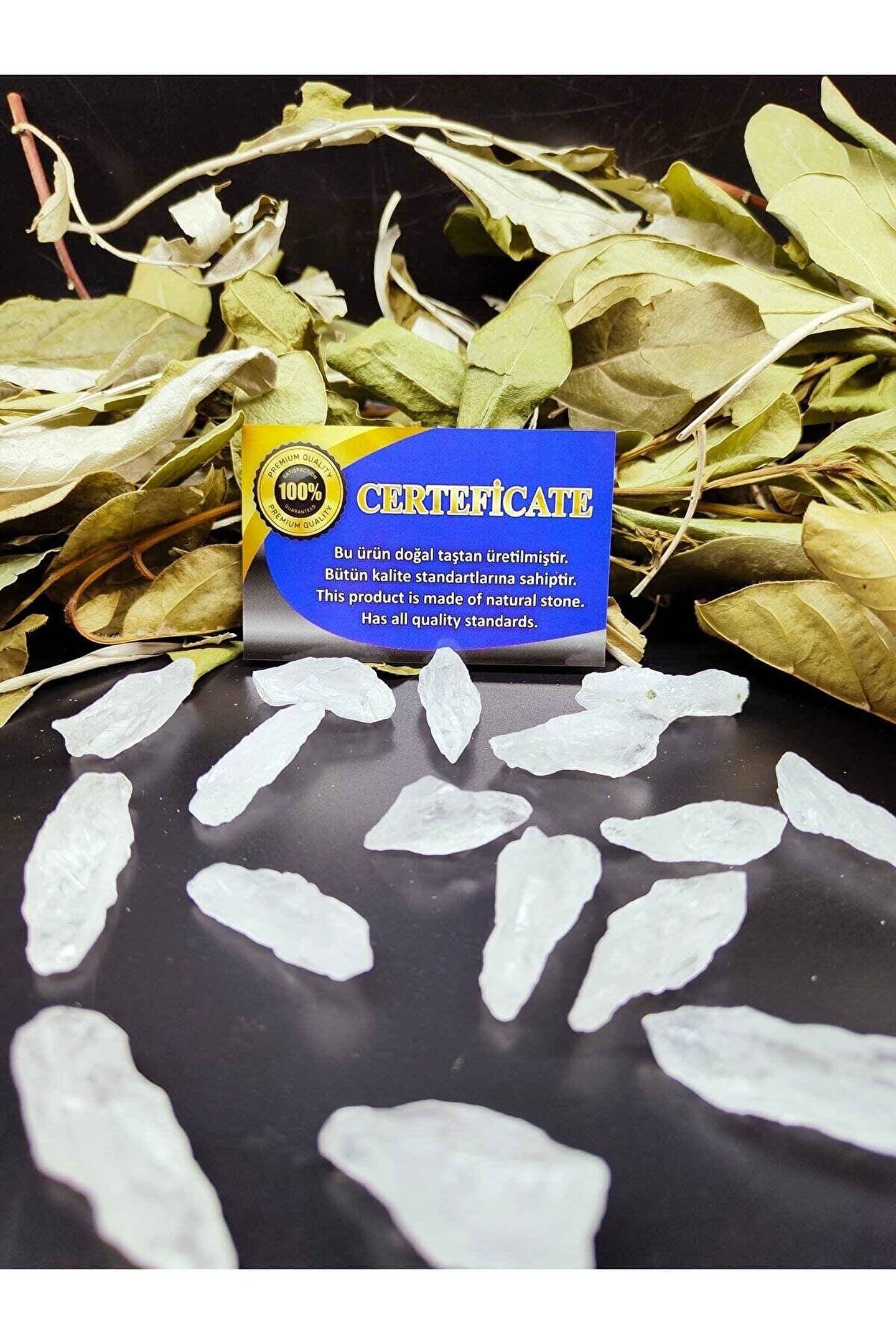 Doğal kristal kuvars taşı, şıklığı ve zarafetiyle dekoratif objelerinize eşsiz bir dokunuş katar; Sertifikalı yapısı ile kalite ve güvenilirlik sunar, böylece satın aldığınız her parça için emin olabilirsiniz; Tek parça halinde sunulan bu kristal kuvars, minimalist ve modern dekorasyon tarzınıza mükemmel uyum sağlar; Doğal taşların sıcaklığını ve estetiğini evinizin her köşesine taşıyarak mekanınıza huzur ve pozitif enerji katın;