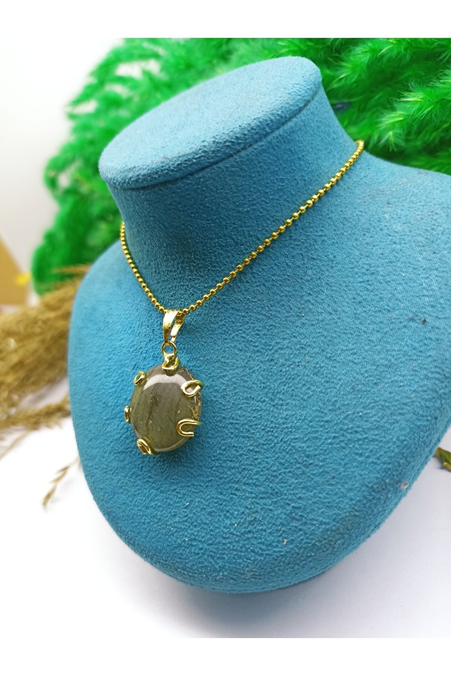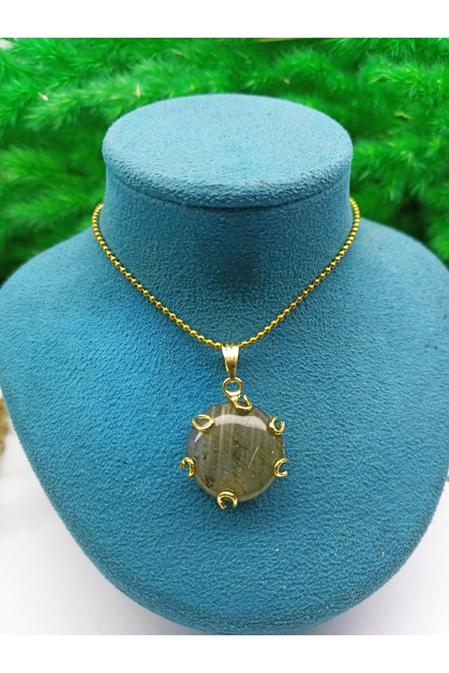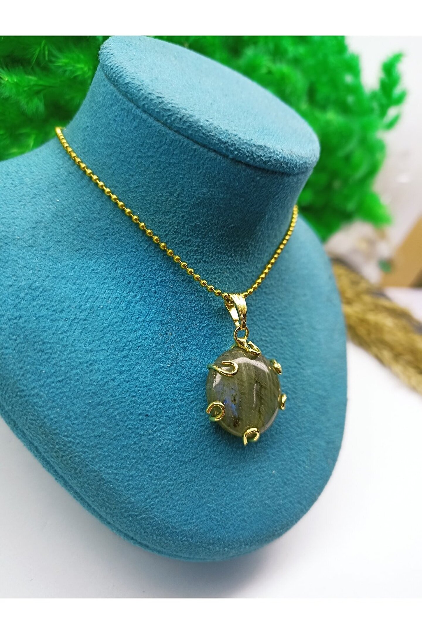 DOĞAL TAŞ CENNETİ Labradorit A Kalite Altın Kaplama Kolye Ucu(sertifikalı)