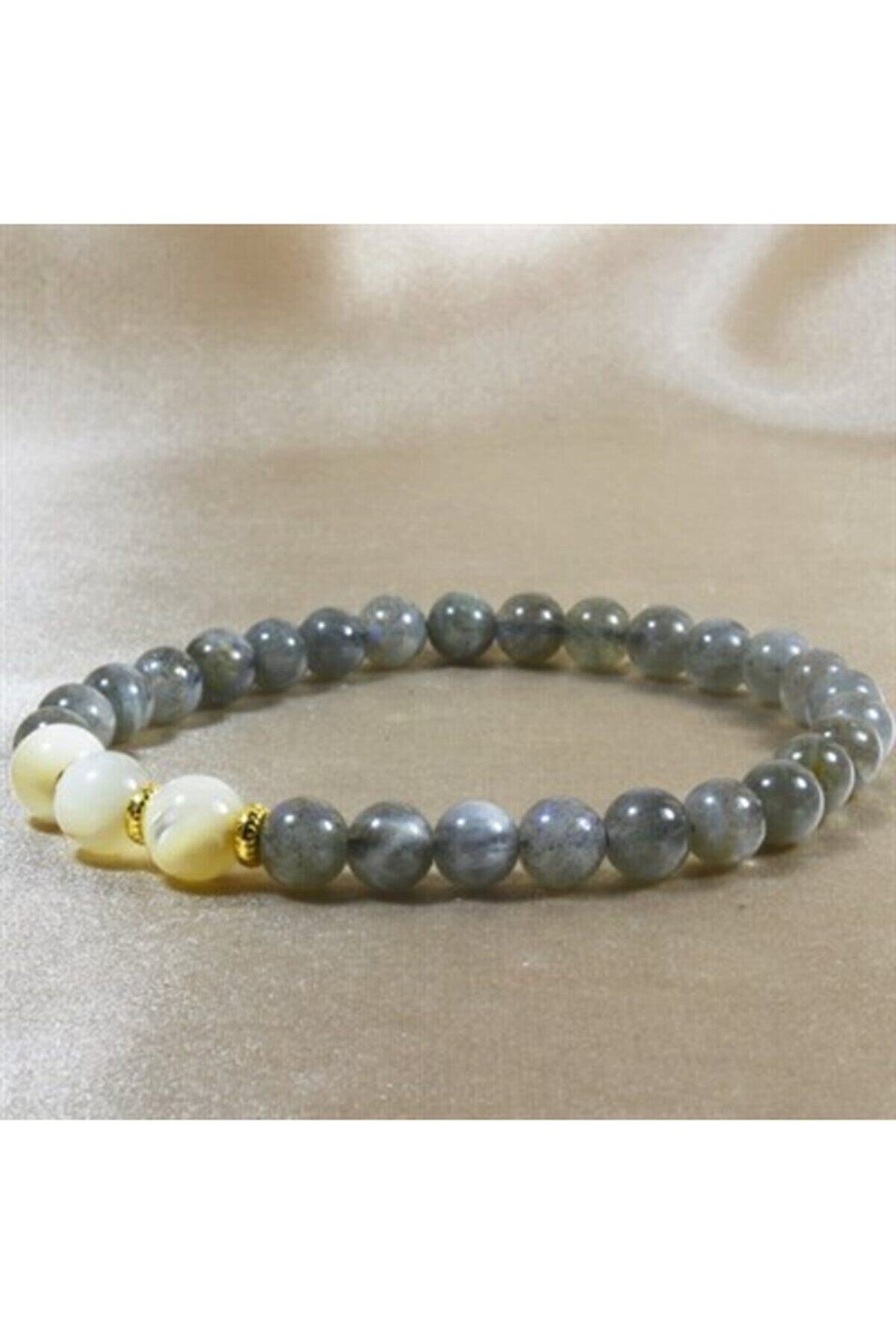 Altın kaplama malzemesiyle üretilmiş, şık ve zarif bir görünüm sunar; Doğal taş kullanımı sayesinde her bileklik benzersiz ve otantik bir hava katar; Sedefli yapısı ile göz alıcı bir parlaklık ve estetik bir dokunuş sağlar;