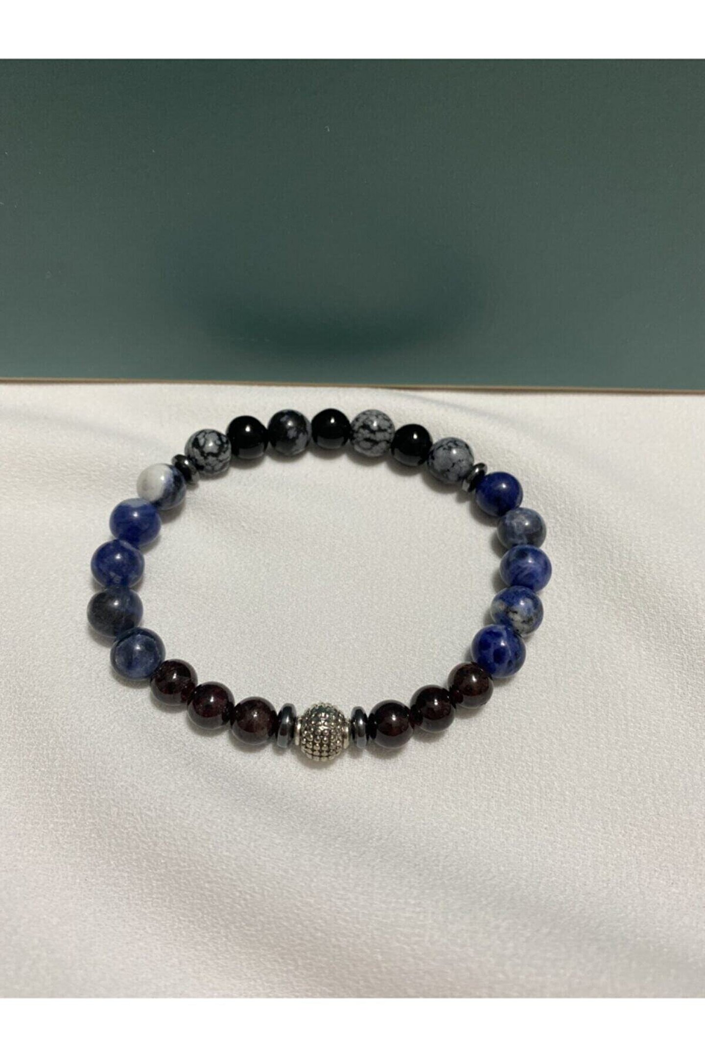 Doğal taş bileklik, şıklığınızı tamamlayacak zarif bir aksesuardır; Lal taşı, sodalit ve kar tanesi obsidyen gibi nadir ve değerli taşlarla süslenmiştir; Her bir bileklik, benzersiz desenleri ve renkleriyle dikkat çeker; Doğal taş materyali sayesinde her bileklik, doğanın saf güzelliğini parmaklarınıza taşır; Bu bileklikler, hem günlük kullanım hem de özel günler için ideal bir seçenektir;