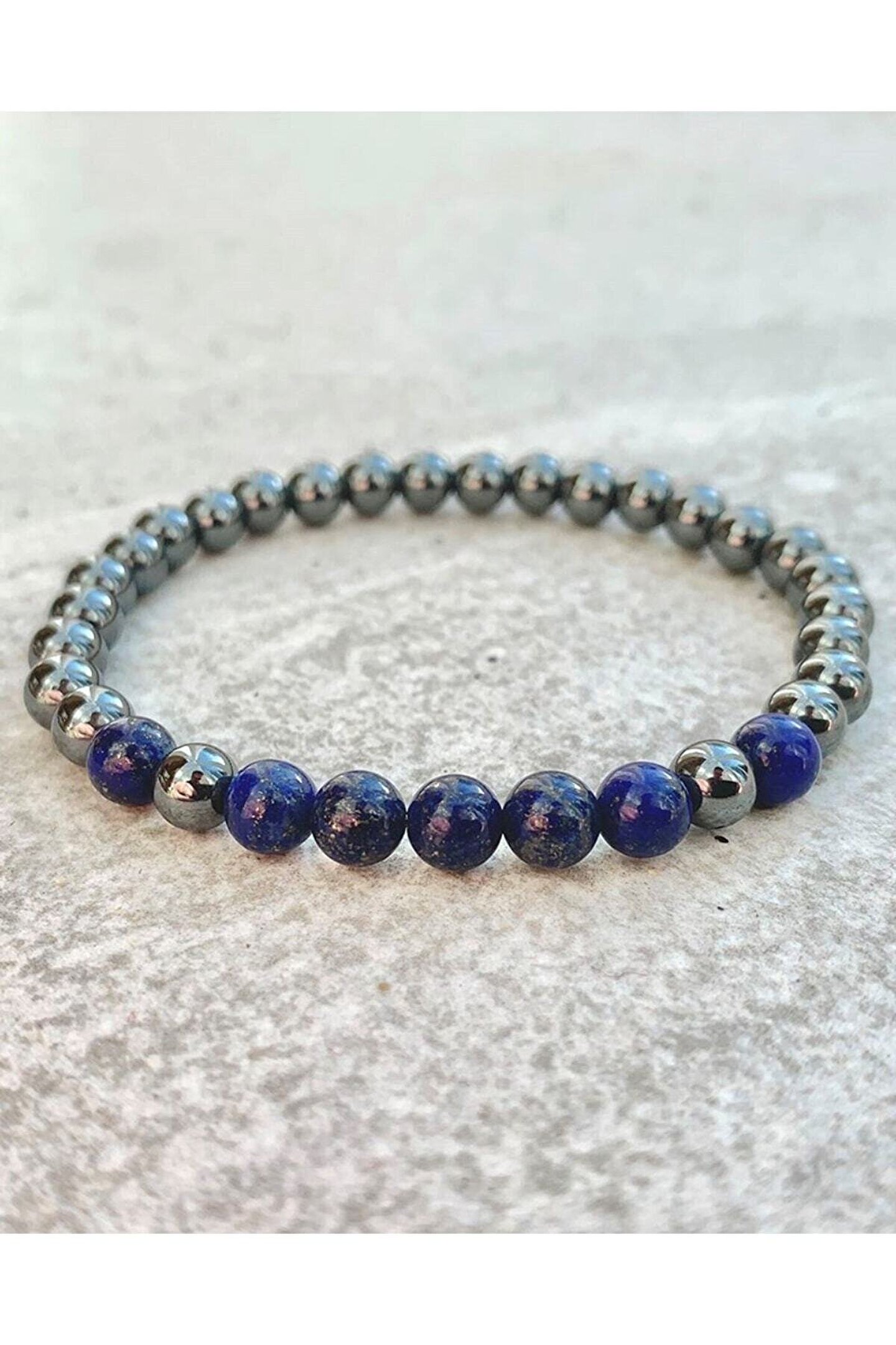 Doğal taş bileklik, şık ve zarif tasarımıyla dikkat çeker.; Lapis ve hematit taşlarının eşsiz kombinasyonu, bileğe zarif bir dokunuş katarken, stil sahibi görünümünüzü tamamlar.; 6 mm kalınlığındaki bileklik, rahat kullanım sunarken aynı zamanda dayanıklıdır.; Bijuteri bileklik, günlük kullanımda bileğinizde rahatça hissedilir ve konfor sağlar.; Hem spor hem de klasik kıyafetlerinizle kolayca uyum sağlar; farklı tarzlara uygunluk gösterir.; Doğal taşların pozitif enerjisiyle kişisel tarzınıza doğallığı katın.;