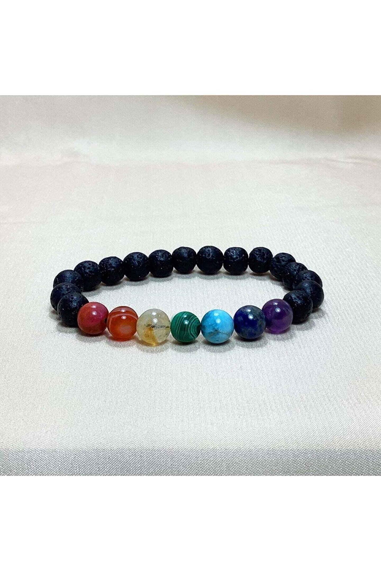 Dünyanın merkezinden gelen Lav Taşı ve Çakra taşları bir araya geldi, Çakra Doğal Taş Bileklik için yepyeni bir tarz dizayn etti.; Lav taşına Çakra Doğal Taş Bileklikte 7 Farklı Çakrayı temsilen 7 Farklı Renkte Doğal Taş eşlik etti.; Şifa, arınma, aura ve çakra temizliği için kullanabileceğiniz Oniks Doğal Taş Çakra Bileklik sizlerin beğenisine sunuldu.; Bileklik tane ebatları 8 mm'dir.; Kök Çakra - Kırmızı - Jasper ; Mide Çakra - Turuncu - Akik ; Sinir Ağı Çakrası - Sarı - Sitrin ; Kalp Çakrası - Yeşil - Malakit ; Boğaz Çakrası - Mavi - Apatit ; Göz Çakrası - Lacivert - Lapis Lazuli ; Taç Çakra - Mor - Ametist ;