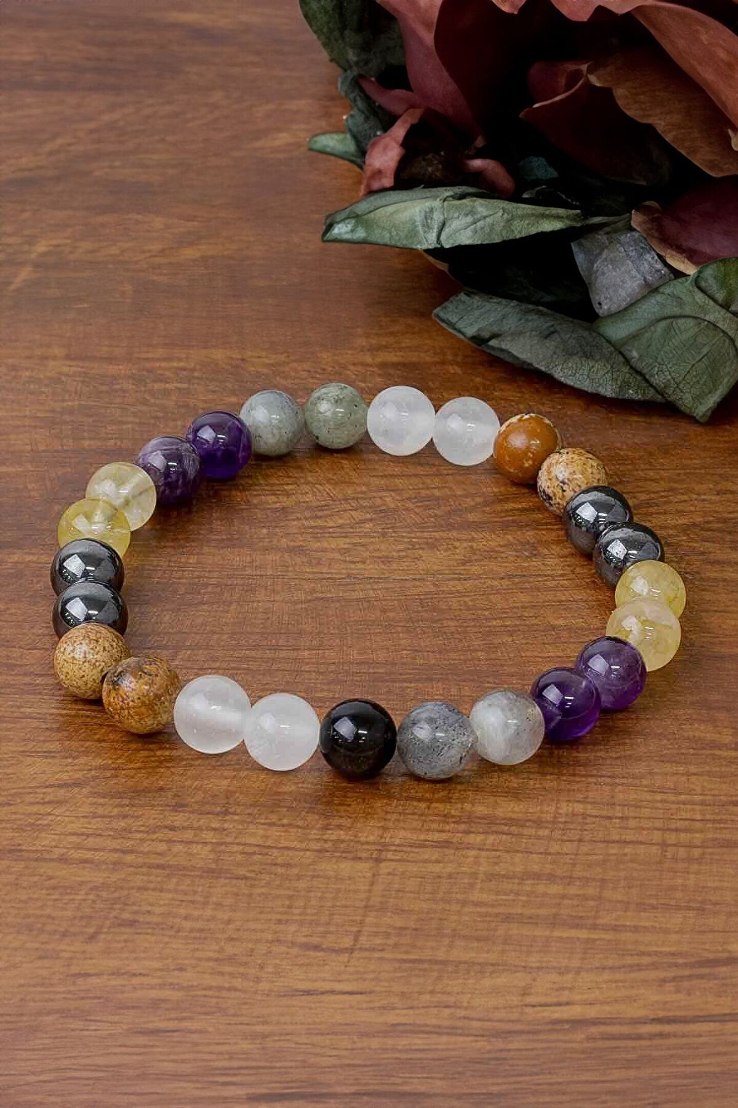 Bu bileklik, 8mm çapında küre kesim taşlardan yapılmıştır.; Dizi uzunluğu 37cm ile 40cm arasında değişir ve dizi genişliği 0.80mm ile 1.00mm arasındadır.; Parlak renkteki taşlar, bileğinizi süslerken aynı zamanda dikkat çekici bir görünüm sunar.; Bu bileklik, zarif ve şık bir tarz arayanlar için mükemmel bir seçenektir.