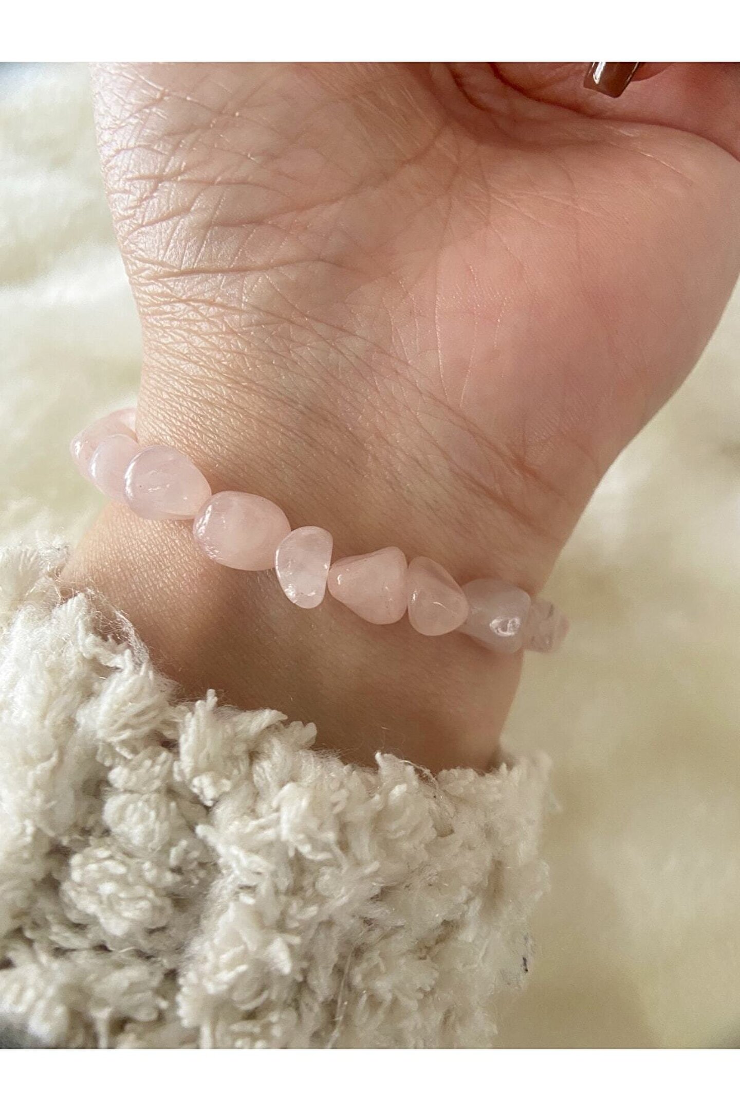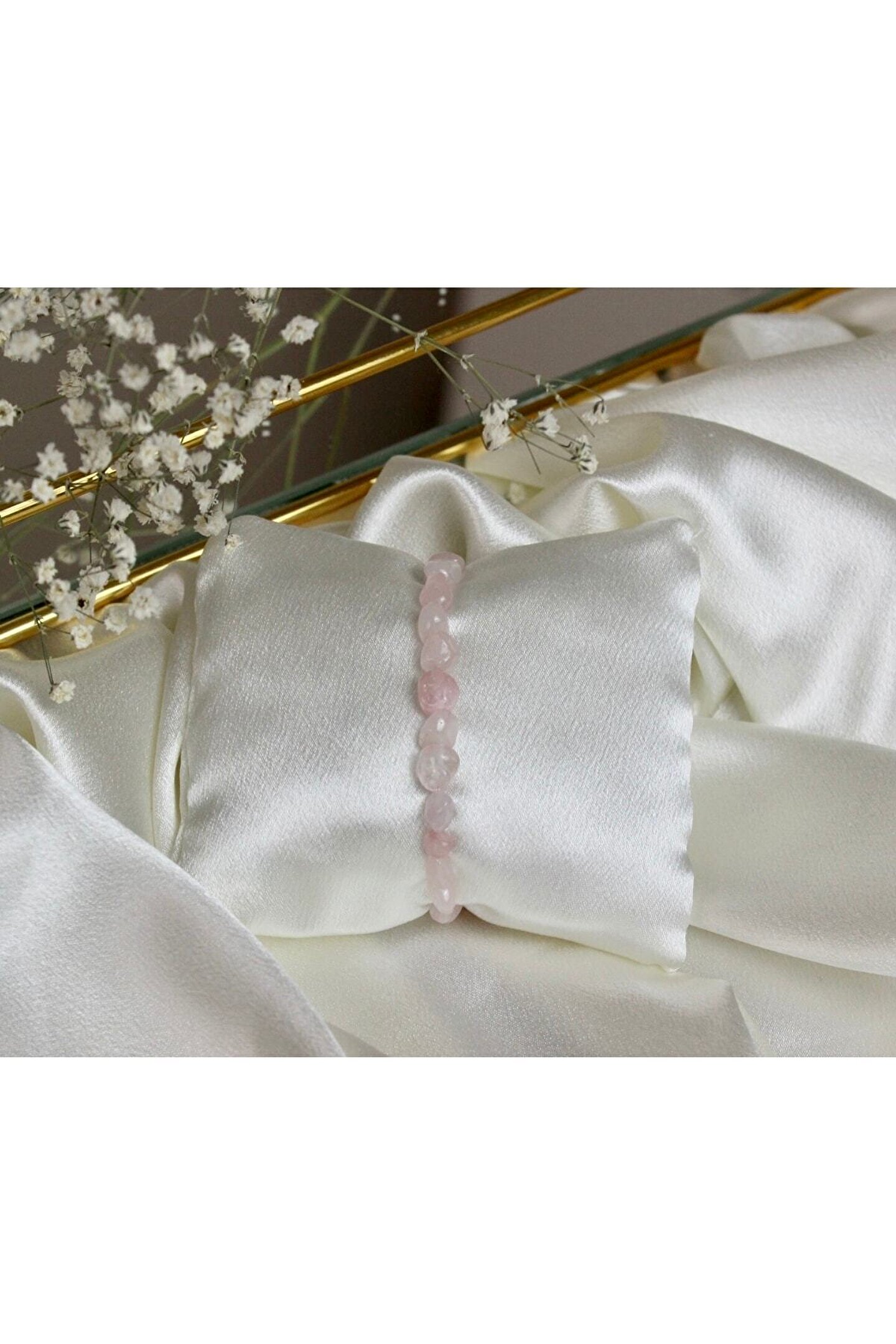 DOĞAL TAŞ CENNETİ Pembe Kuvars Asimetrik Kesim Bileklik