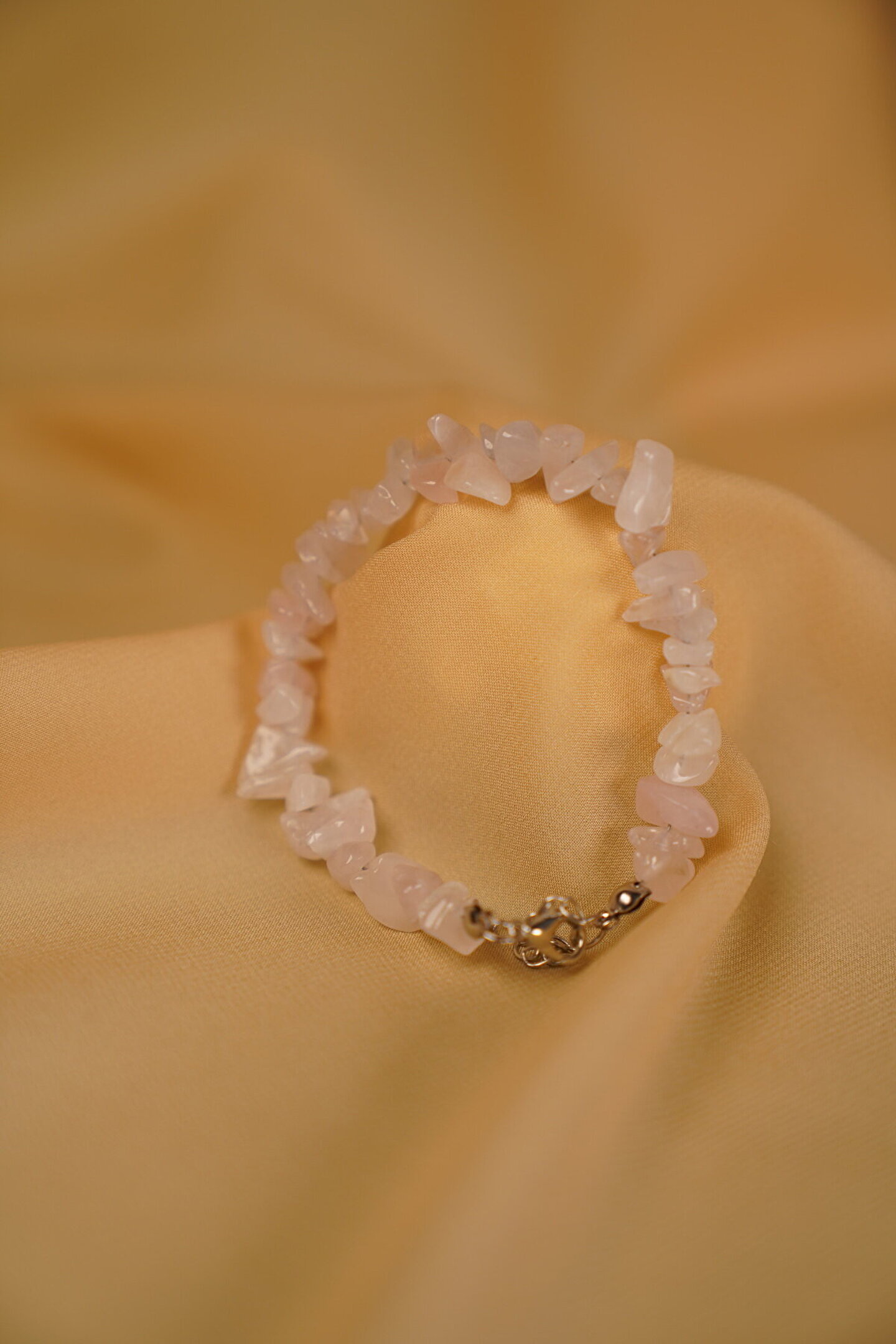 DOĞAL TAŞ CENNETİ Pembe Kuvars Kırık Doğaltaş Bileklik