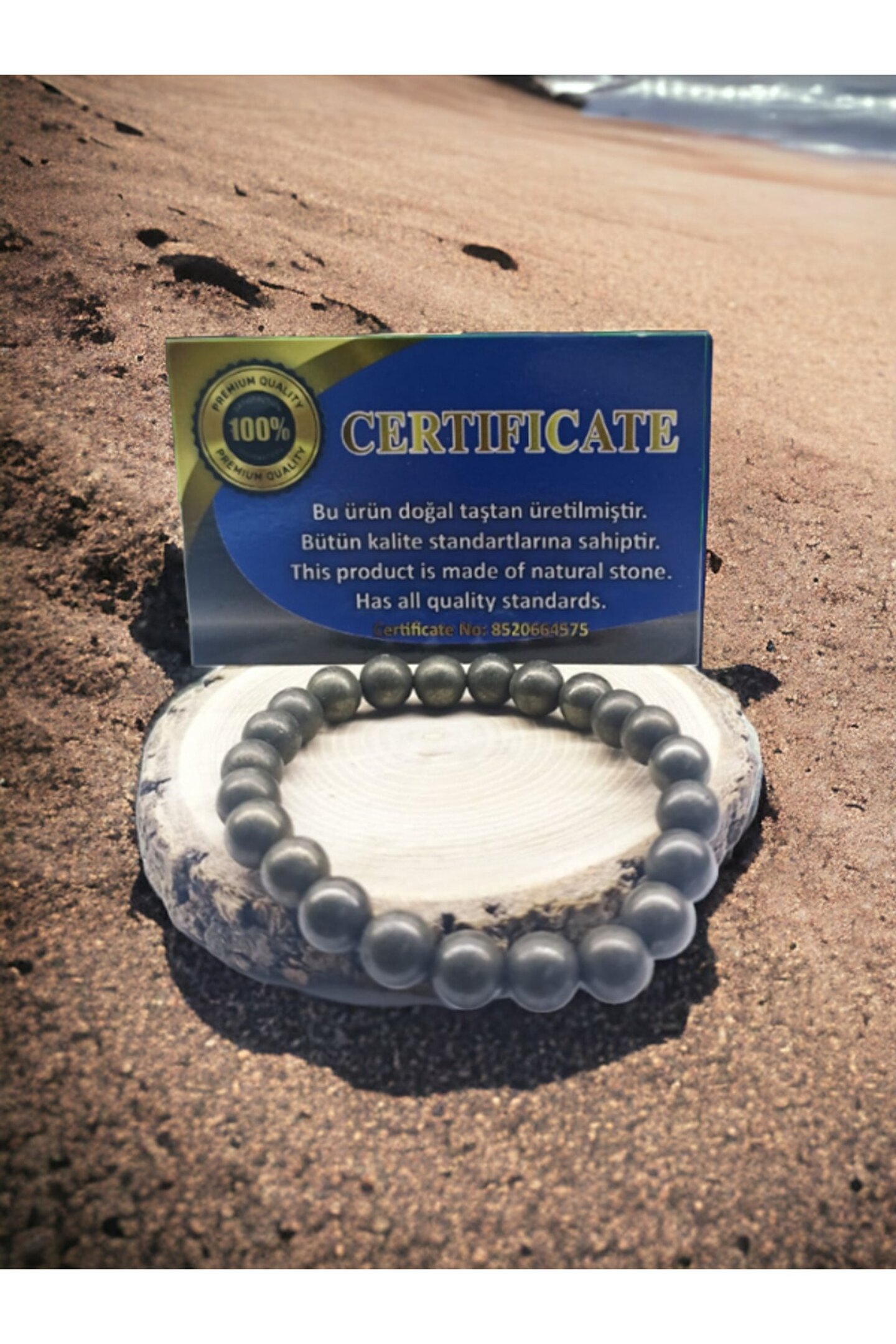 Doğal Pirit taşı kullanılarak üretilmiş, her bir bileklikte benzersiz desenler ve renkler sunar; Sertifikalı ürünümüz, kalite ve güvenilirlik açısından tüketicilere güvence verir; Taşın doğal yapısı ve dokusu, her parça benzersiz bir görünüm kazandırır ve şıklığınızı tamamlar; Pirit taşı, enerji taşı olarak bilinir ve pozitif enerjiyi yansıtarak kişisel bakımınıza katkıda bulunur;