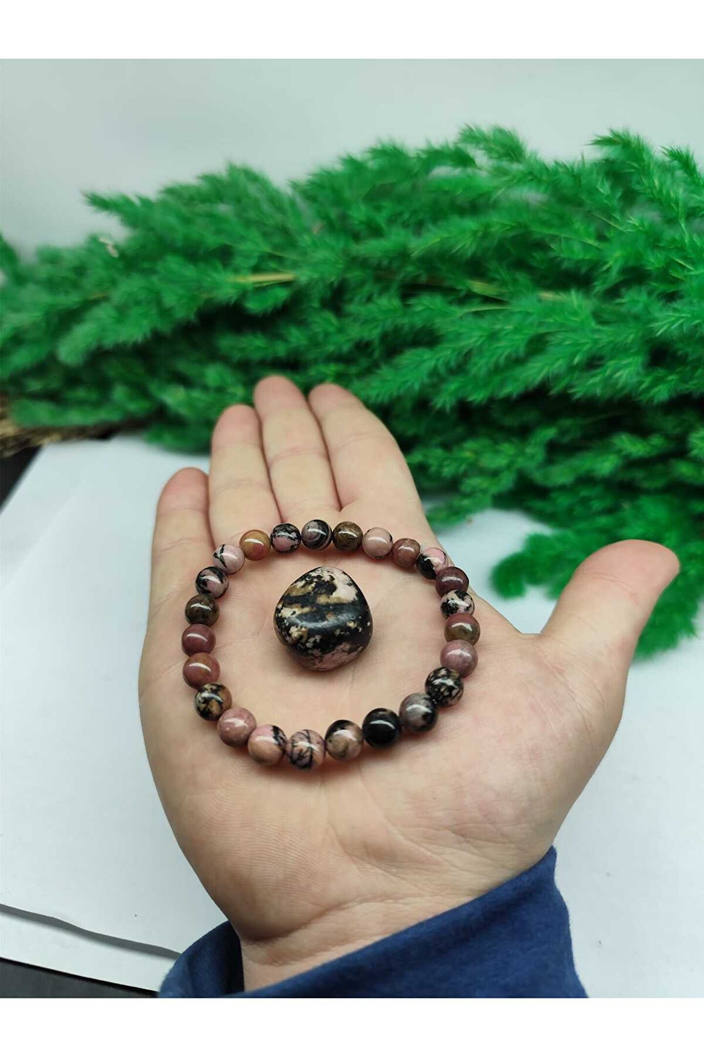 Doğal taş bileklik, şıklığınızı tamamlayacak zarif bir aksesuardır; Rodonit taşı kullanımı sayesinde benzersiz ve doğal bir görünüm sunar; Doğal taş materyali ile hem dayanıklılık hem de estetik bir dokunuş sağlar; Taş cinsi olarak seçilen Rodonit taşı, bilekliğinize eşsiz bir parlaklık katar;