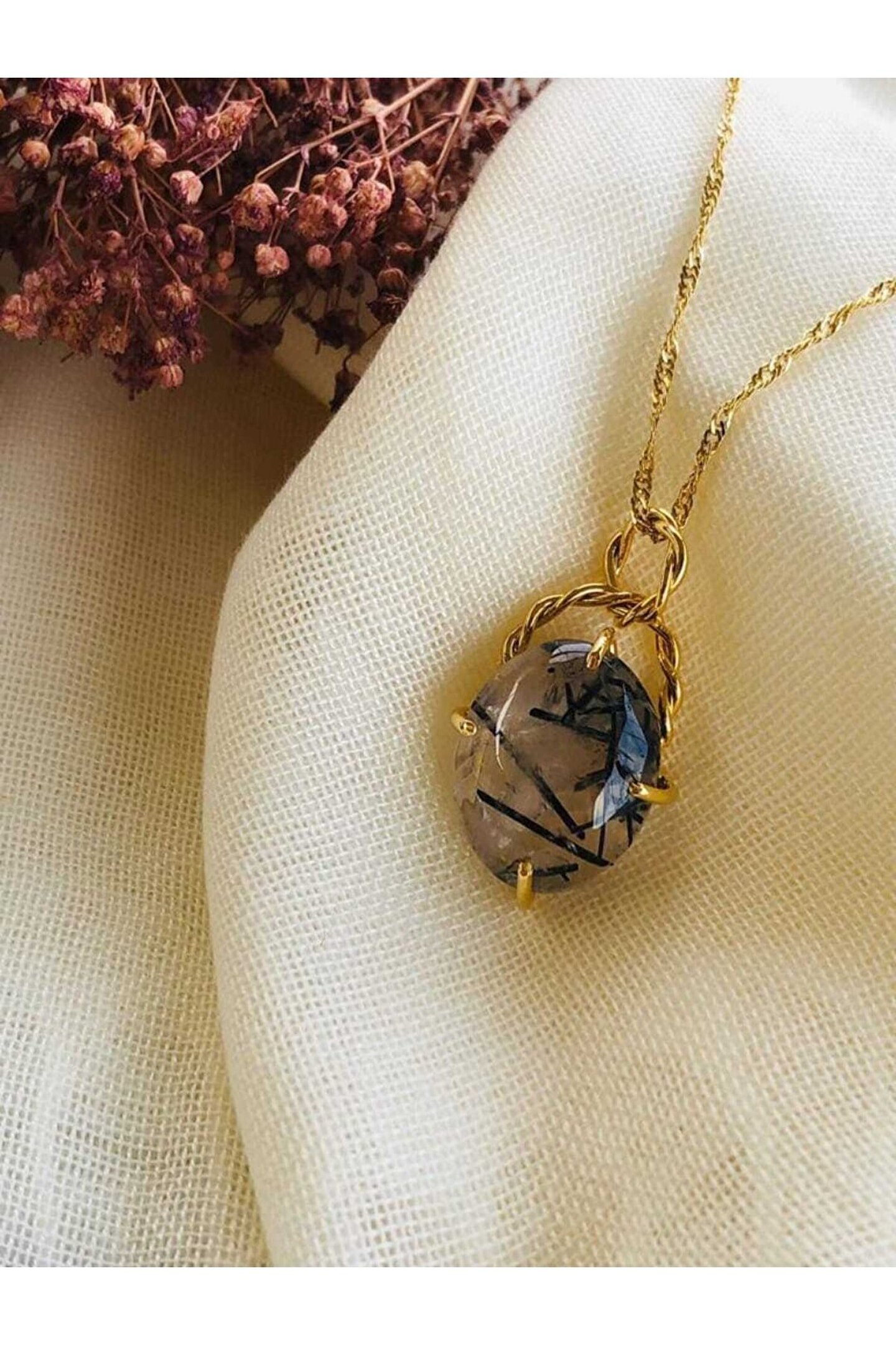 Doğal taş kullanımı ile öne çıkan bu kolye ucu, her parça benzersiz bir dokunuş sunar; Altın kaplama zinciri sayesinde hem şıklığı hem de dayanıklılığı bir arada barındırır; 47 cm uzunluğundaki zincir, rahat bir kullanım sağlar ve farklı boyuttaki boynuzlara uyum sağlar; Sertifikalı ürün olması, kalitesinin ve orijinalliğinin garanti altına alınmış olduğunu gösterir;