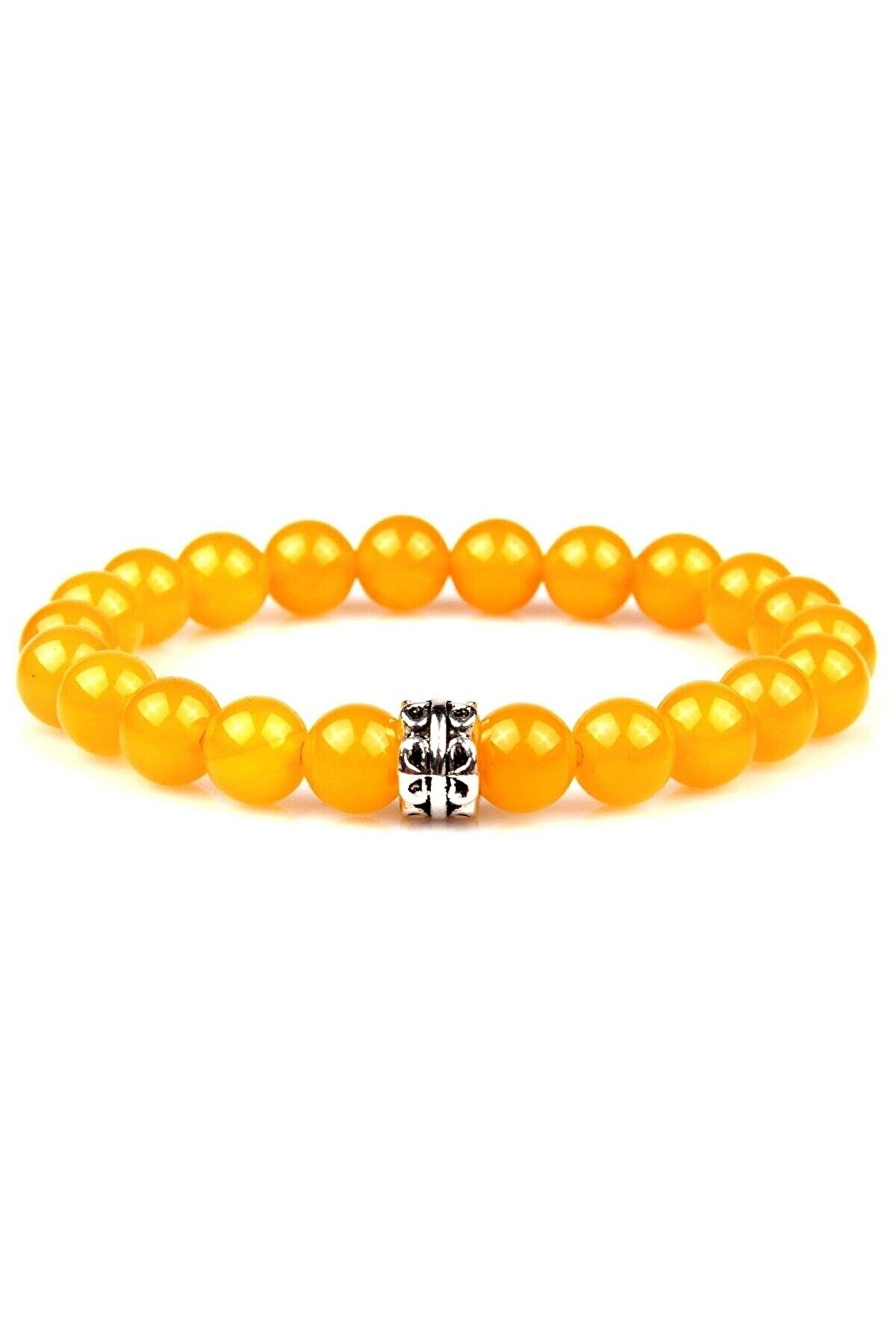 Sarı Akik Doğal Taş Bileklik 8 mm Küre Kesim ÜRÜN : Sarı Akik Doğal Taş Bileklik 8 mm Küre Kesim ŞEKİL : Küre KESİM : Düz TANE BOYU : 8 mm TANE ENİ : 8 mm RENK : Renklendirilmiştir; (Renk vermez) UZUNLUK : Standart TANE ADETİ : 22; 23 Adet AĞIRLIĞI : 17,4 gr KULLANILAN MALZEME : Doğal Taş, Gümüş Kaplama Oksit Metal Malzeme ve Lastik Misina;