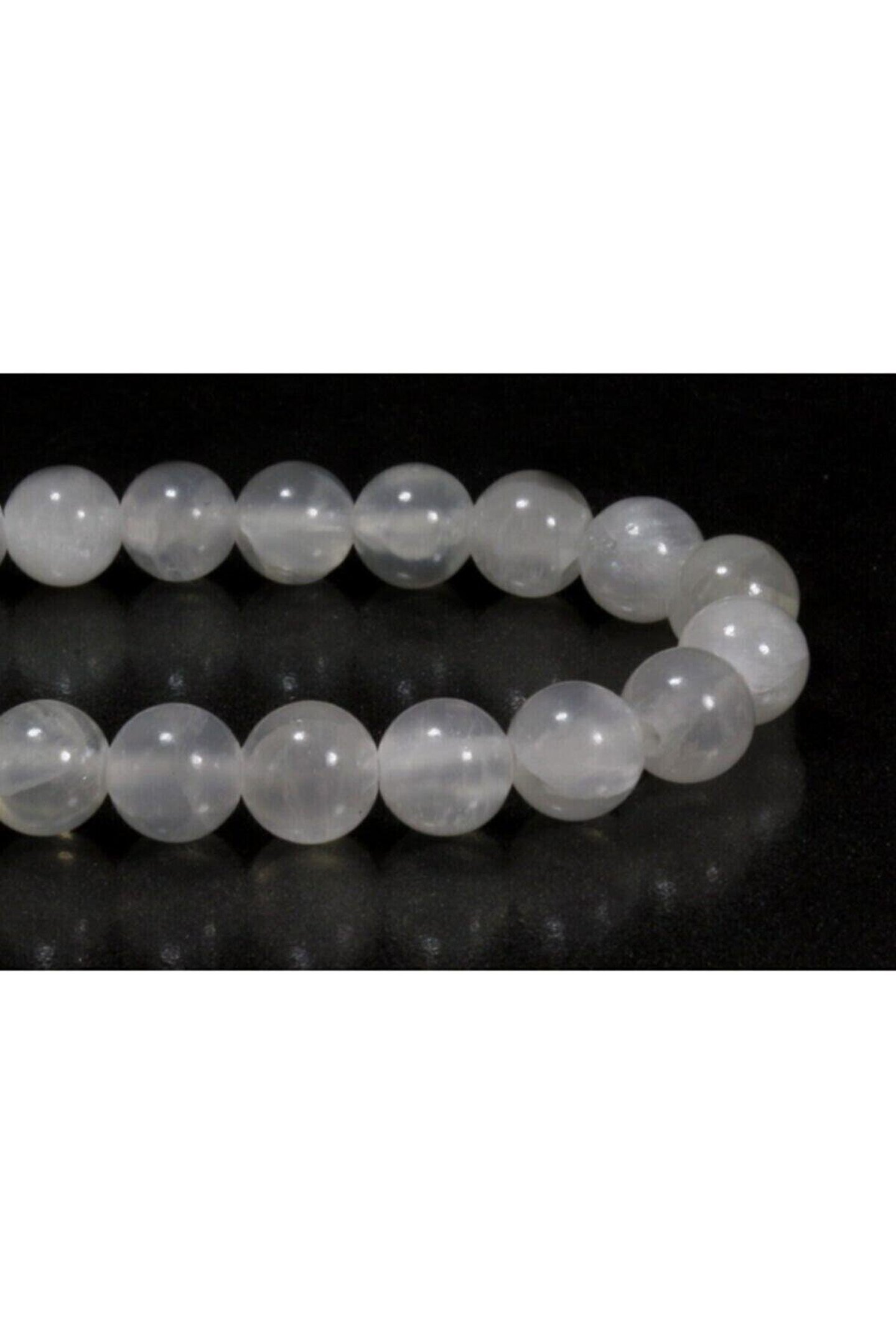 Selenit taşı evinizi koruyucu bir kalkan gibi koruyabilecek, güven ve huzur vererek zihinsel karmaşaların üstesinden gelmeniz için destek olacaktır.; ; Beyaz rengin saflığı ve güzelliği ile her türlü kombininizle kullanbilieceğiniz bir aksesuar olacak.; ; Selenit bileklik tane ölçüleri 8 mm;