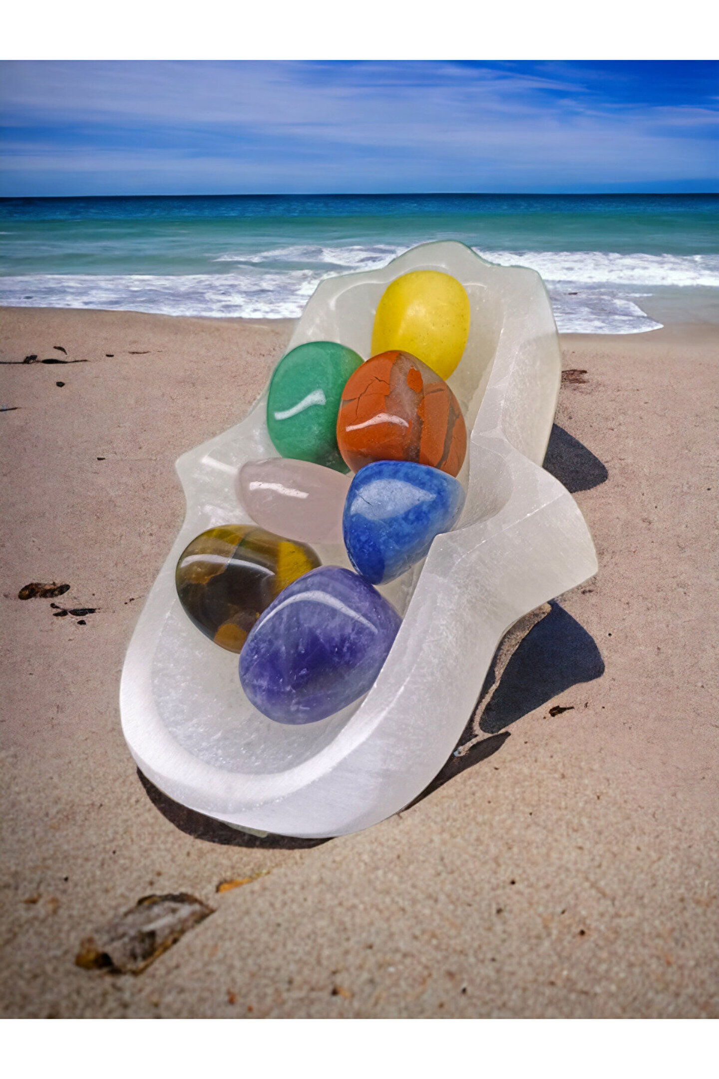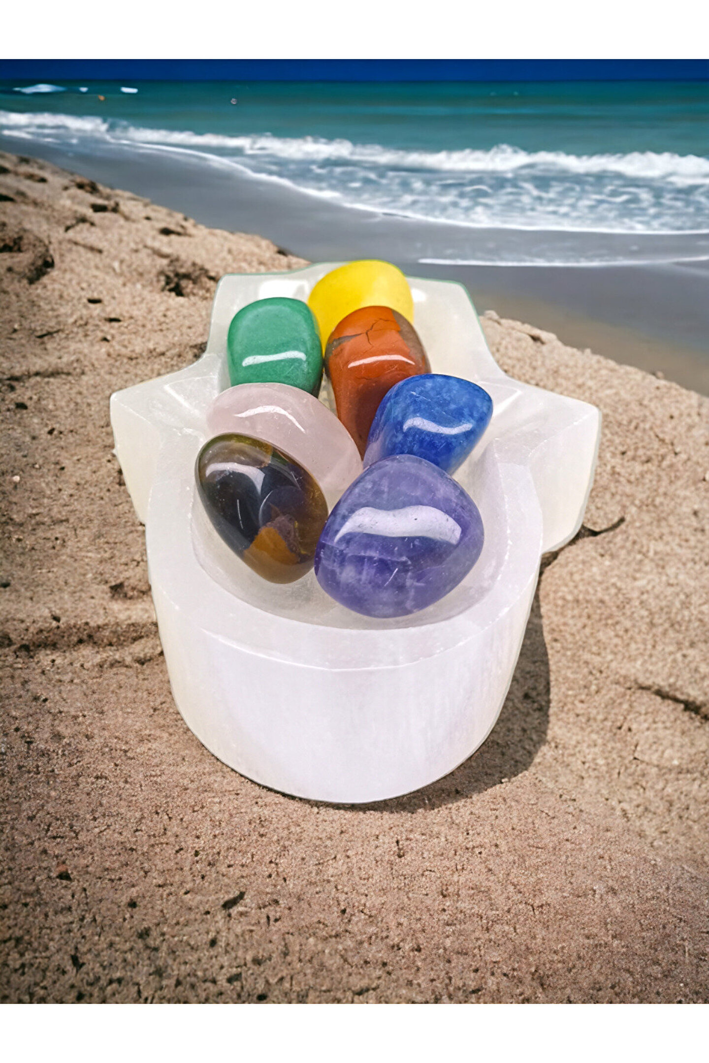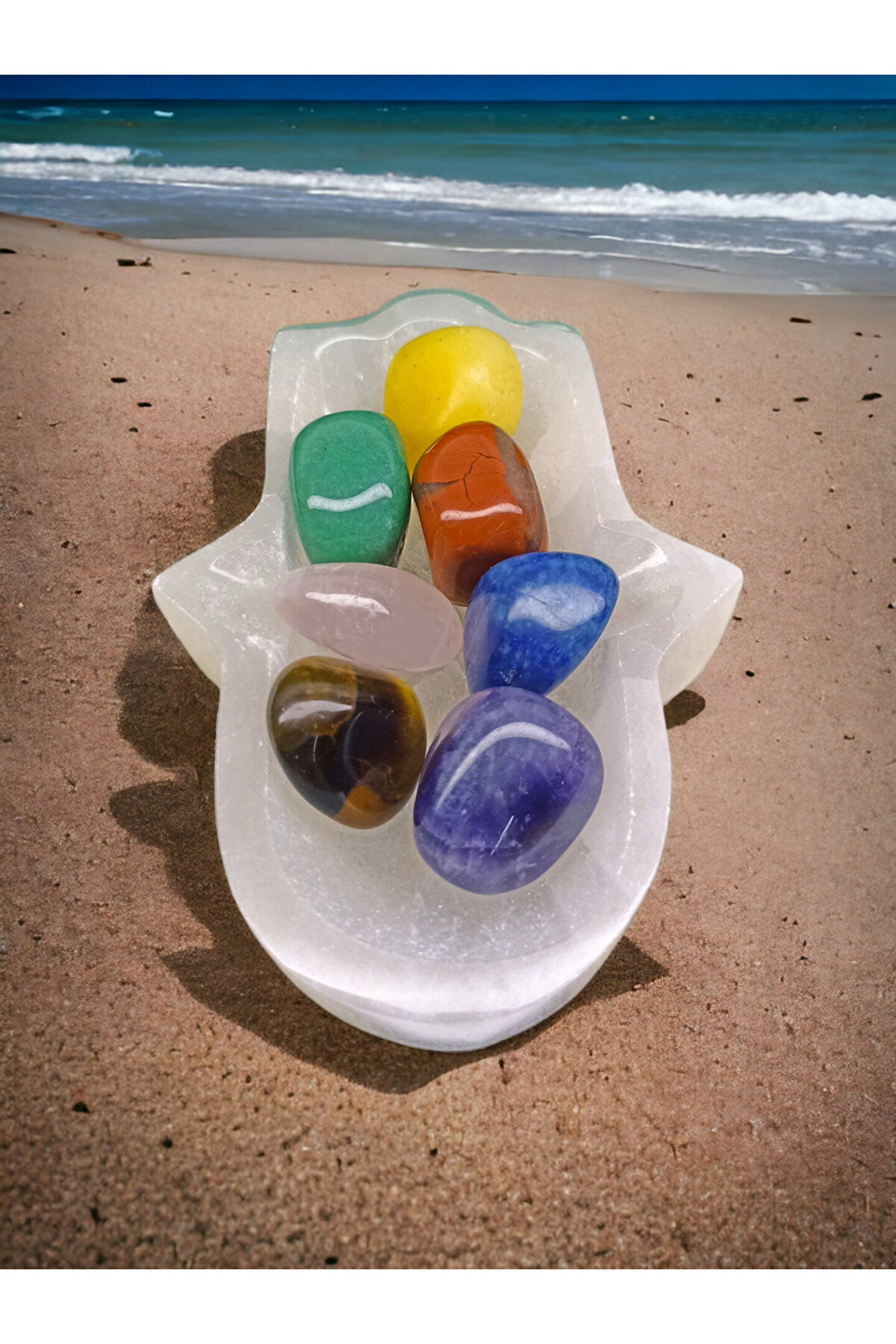 DOĞAL TAŞ CENNETİ Selenit Fatma Ana Eli Kase Arındırma Taşı VE ÇAKRA SET TIMBIL(SERTİFİKALI)
