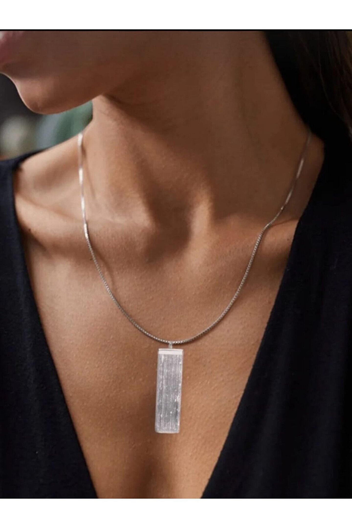 Selenit ham kolye ucu, doğal taşların zarifliğini ve şıklığını yansıtan bir aksesuar seçeneğidir; Doğal taş kullanımı sayesinde her kolye benzersiz ve otantik bir görünüm sunar; Çelik zincirli yapısı ile dayanıklılığı artırırken, kararmaya karşı direnç gösterir;