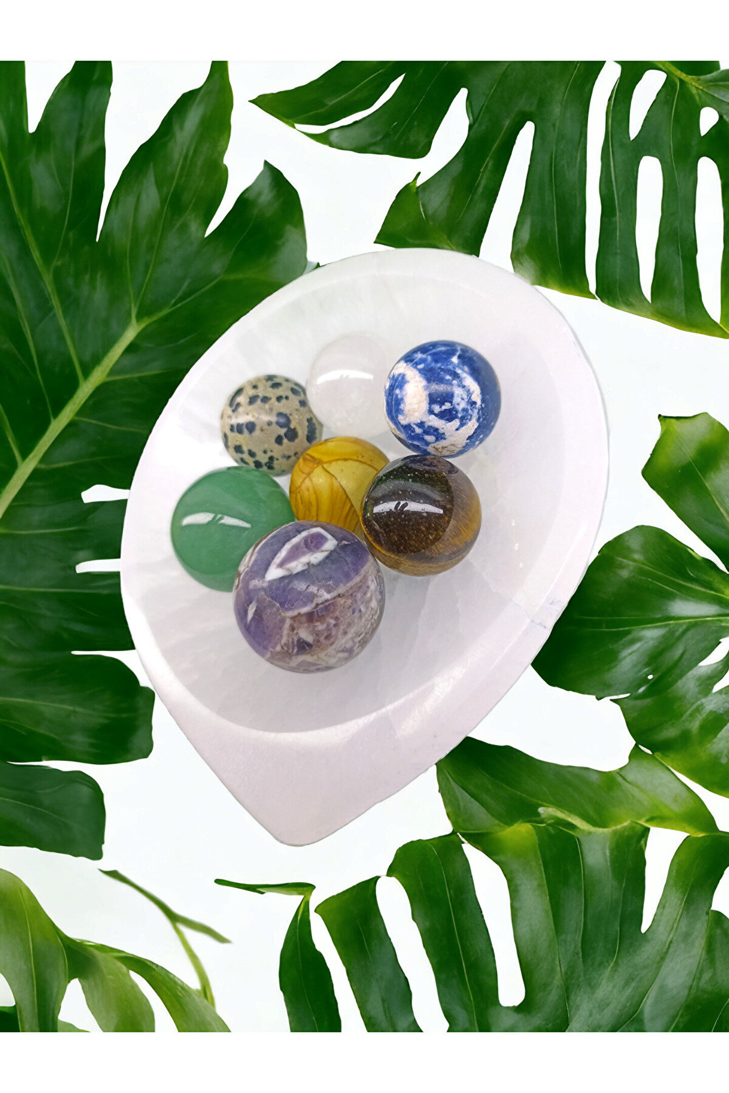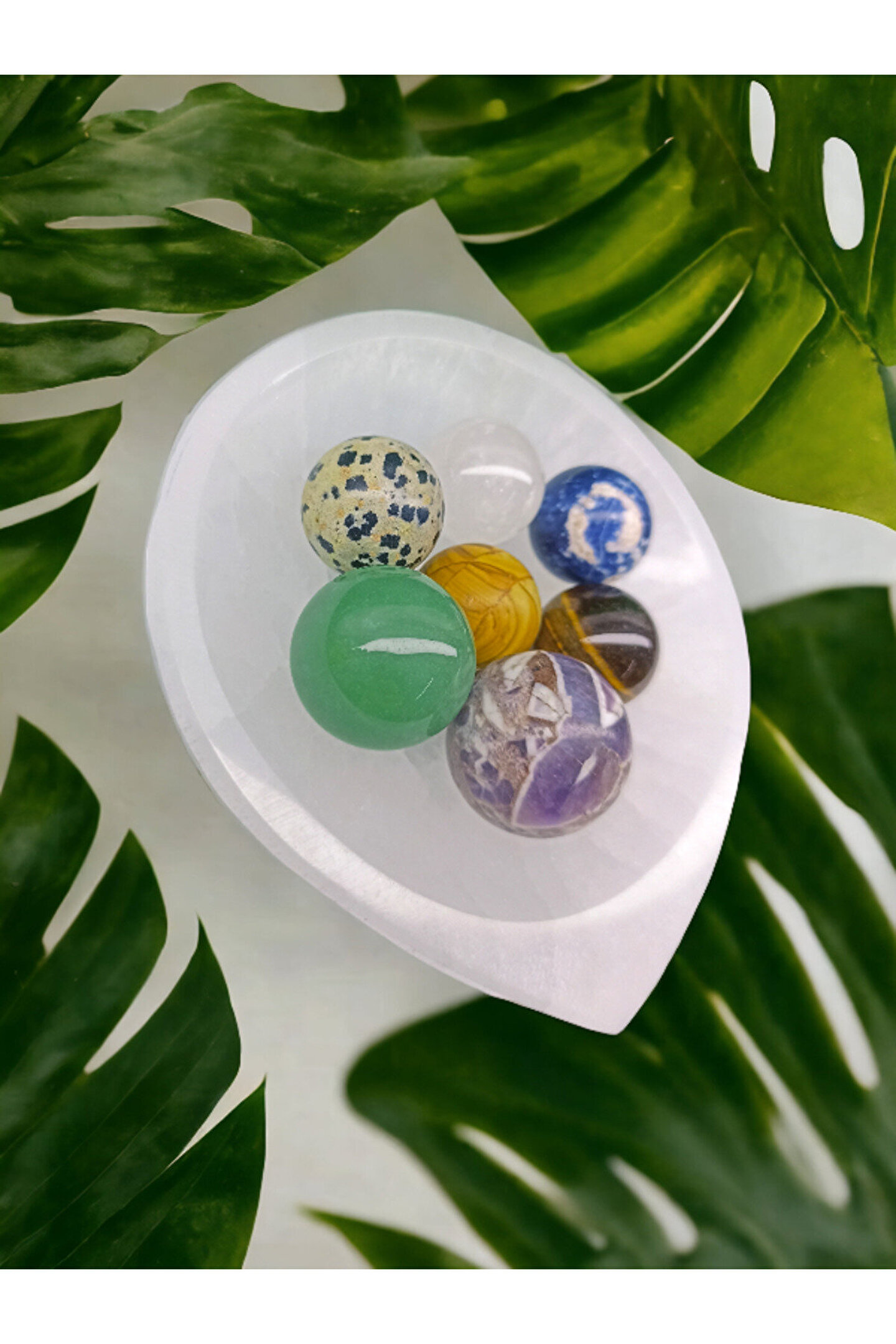 DOĞAL TAŞ CENNETİ Selenit Kase Arındırma Taşı VE ÇAKRA SET (ASA)(SERTİFİKALI)