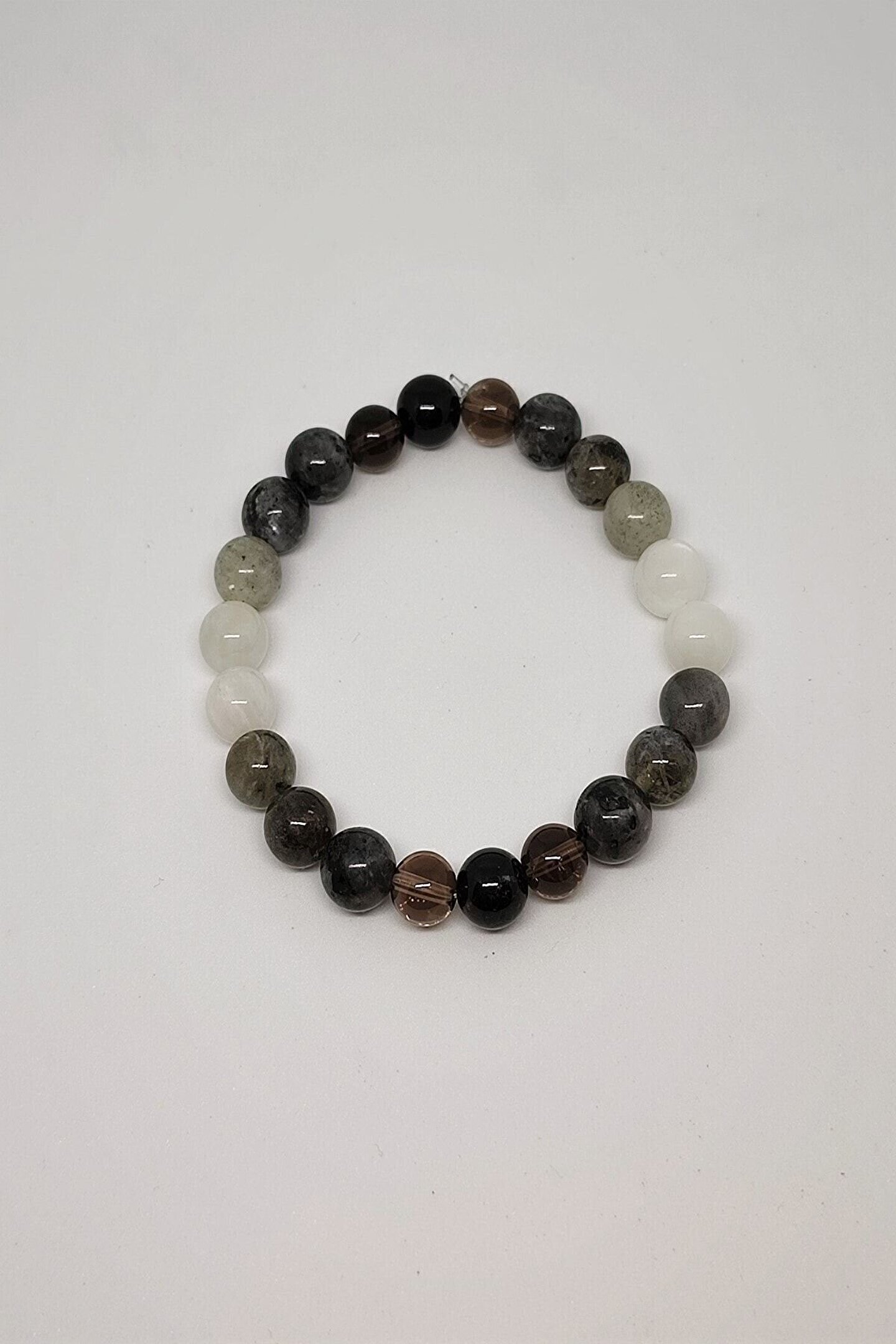 - Doğal taş bileklik, şıklığınızı tamamlayacak zarif bir aksesuardır; - Sertifikalı 8 mm dumanlı kuvars, larvakit, labradorit ve ay taşı gibi değerli taşlarla süslenmiştir; - Her bir bileklik, benzersiz ve otantik bir görünüm sunar; - Doğal taş materyali sayesinde her parça eşsizdir ve doğanın güzelliklerini bileğinizde taşımanızı sağlar;