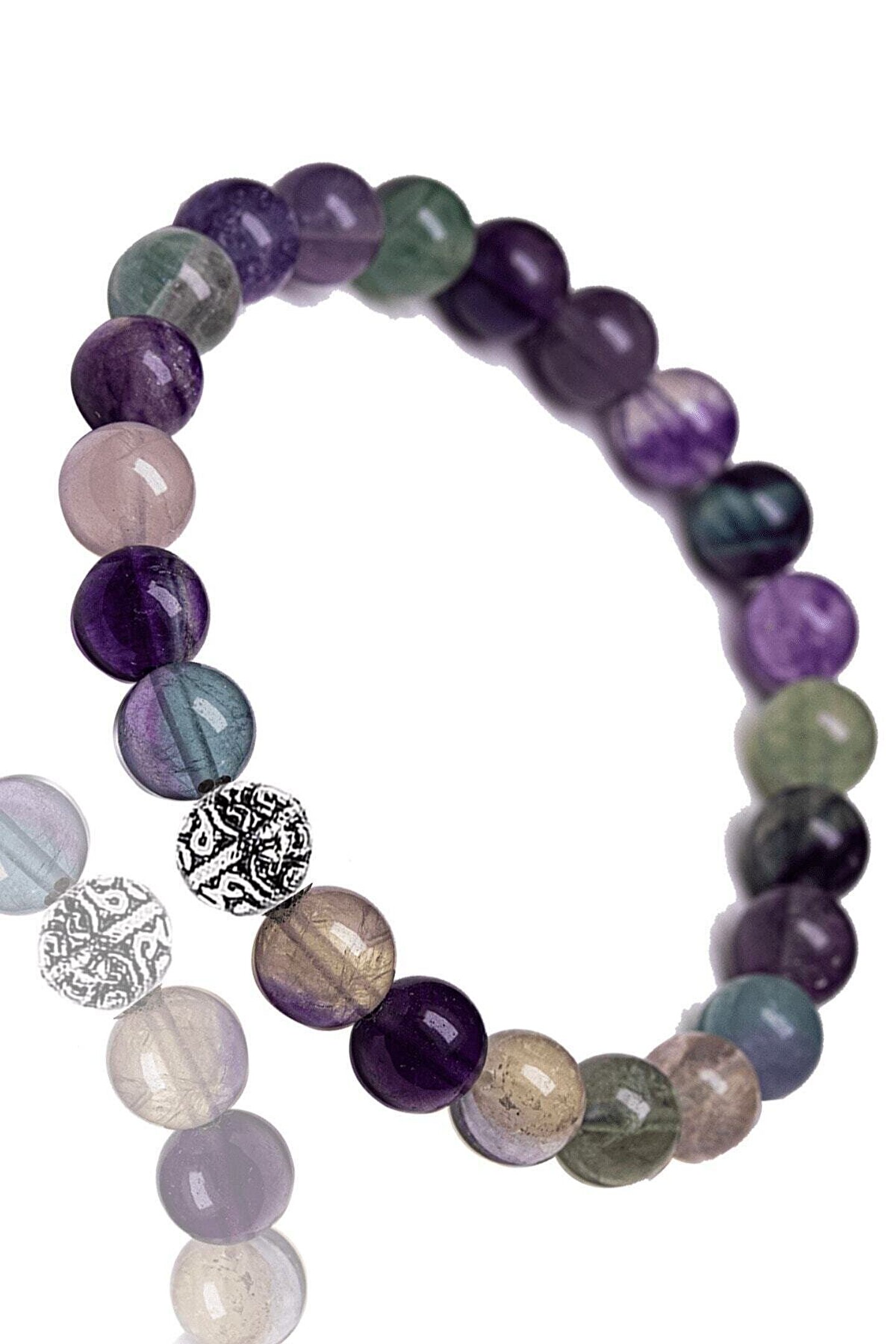 DOĞAL TAŞ CENNETİ Sertifikalı Aaa+ Kalite Florit Taşı Bileklik - Gümüş Aparatlı