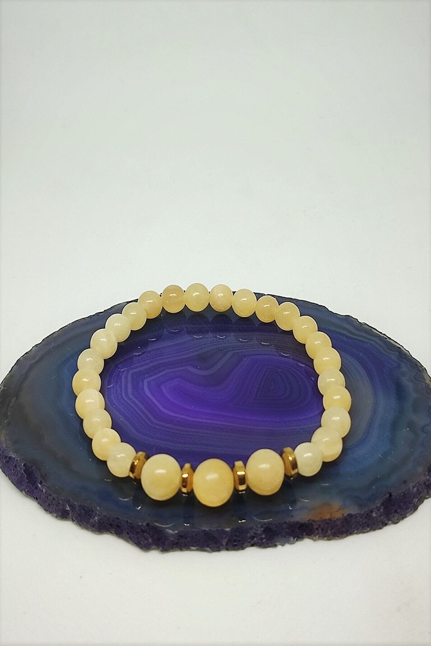 Doğal kalsit taşı kullanılarak üretilmiş, her bir bileklik benzersiz ve özgün bir tasarıma sahiptir; - Sertifikalı kalsit doğaltaş bileklik, hem şıklığı hem de doğallığı bir arada sunar; - El işçiliği ile hazırlanan bu bileklik, günlük kullanım için idealdir ve her kıyafetle uyum sağlar; - Sertifikalı doğaltaş bileklik, kalite ve güvenilirlik açısından da öne çıkarak uzun süreli kullanım vaat eder;