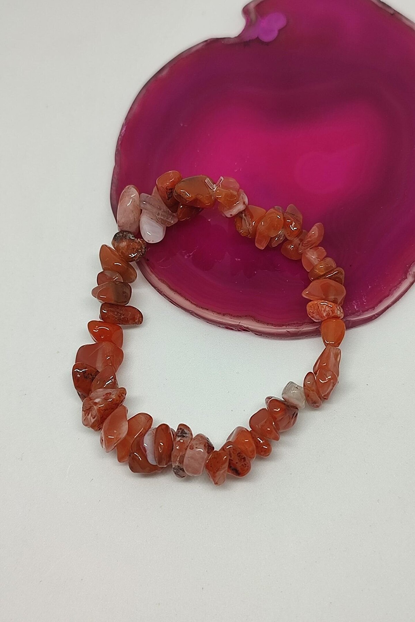 Doğal taş kullanımı ile tasarlanmış, şık ve modern bir aksesuar olan bu bileklik, bileğinize doğal bir güzellik katıyor.; Turuncu akik kırıktaş doğaltaşından üretilmiş olup, benzersiz desenleriyle dikkat çekici bir görünüm sunuyor.; Sertifikalı akik taşının sağladığı zarif dokunuşla her ortamda stilinizi ön plana çıkarabilirsiniz.; Doğal taş kullanımı sayesinde her parça benzersiz ve özgün bir tasarıma sahip oluyor, böylece size özel bir aksesuar haline geliyor.; Günlük kullanımdan özel davetlere kadar geniş bir yelpazede farklı kıyafetlerle uyum sağlayarak stilinizi tamamlıyor.;