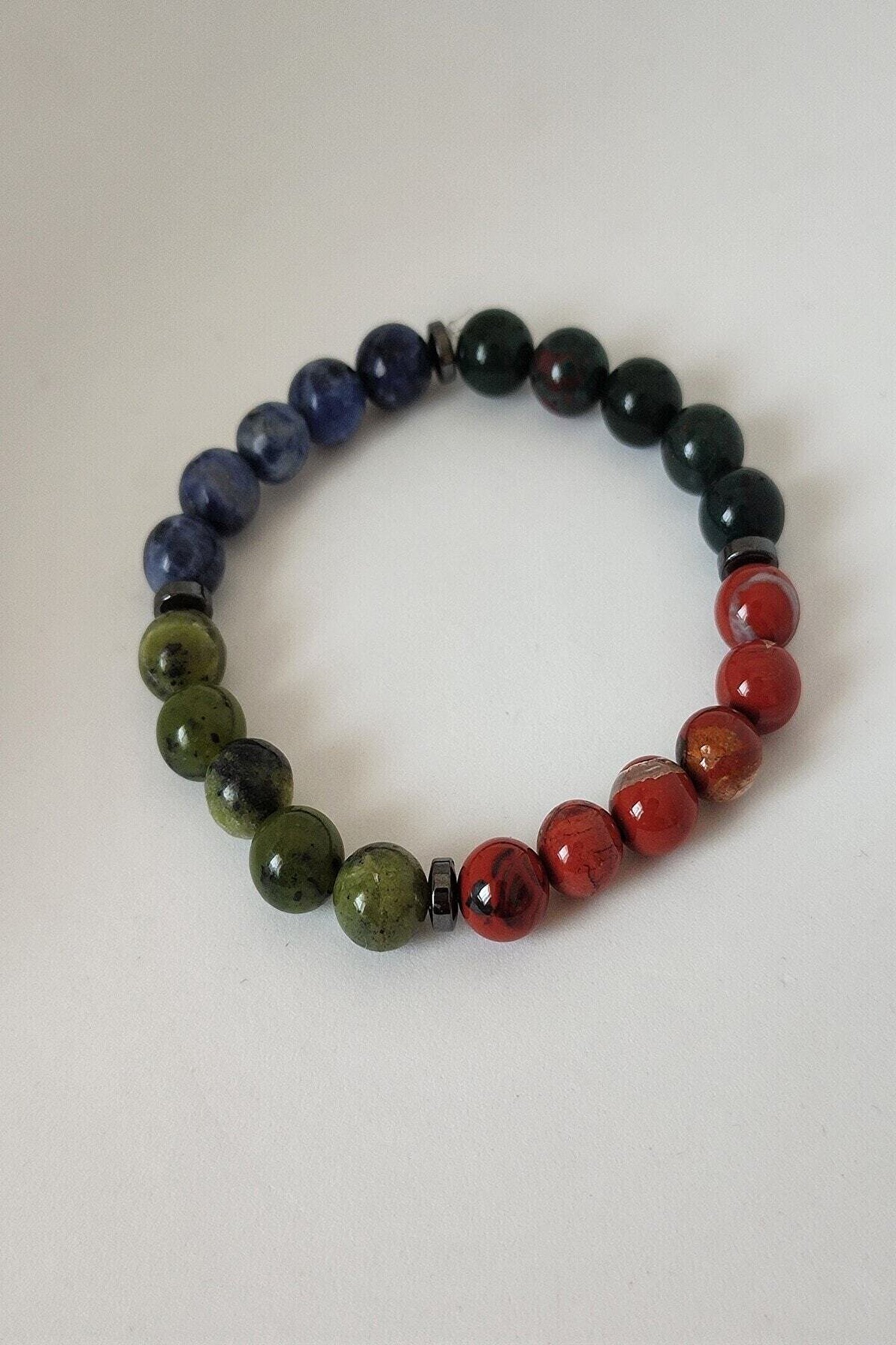 DOĞAL TAŞ CENNETİ Sertifikalı Yeşim, Kan Taşı, Sodalit, Kırmızı Jasper Doğaltaş Bileklik